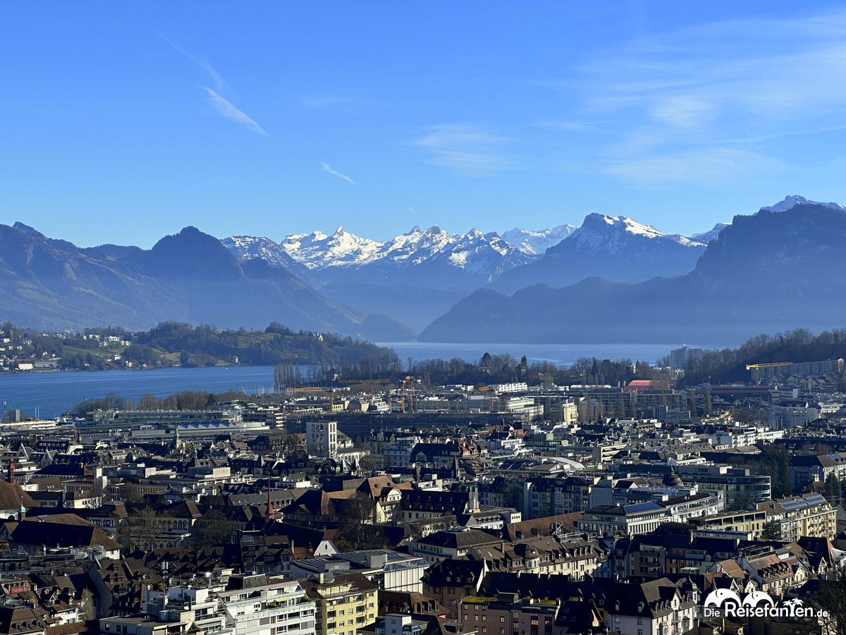 Einen tollen Ausblick auf Luzern hat man vom Gütsch, der eine atemberaubende Aussicht auf die Stadt, den Vierwaldstättersee und die umliegenden Berge bietet. Auf dem Gütsch befindet sich das gleichnamige Hotel Gütsch, das im 19. Jahrhundert erbaut wurde. Wir brauchten rund 30 Minuten vom Stadtzentrum, bis wir den Gipfel erreichten. Alternativ gibt es auch eine Seilbahn, man kann den Weg aber auch gut laufen. Der Ausblick lohnt sich!