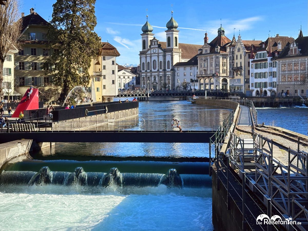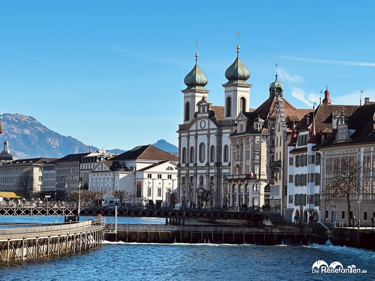 Von der Kapellbrücke gingen wir weiter zur Jesuitenkirche. Die barocke Kirche aus dem 17. Jahrhundert ist ebenfalls ein Wahrzeichen Luzerns. Sie liegt direkt am Ufer und bildet ein tolles Fotomotiv.