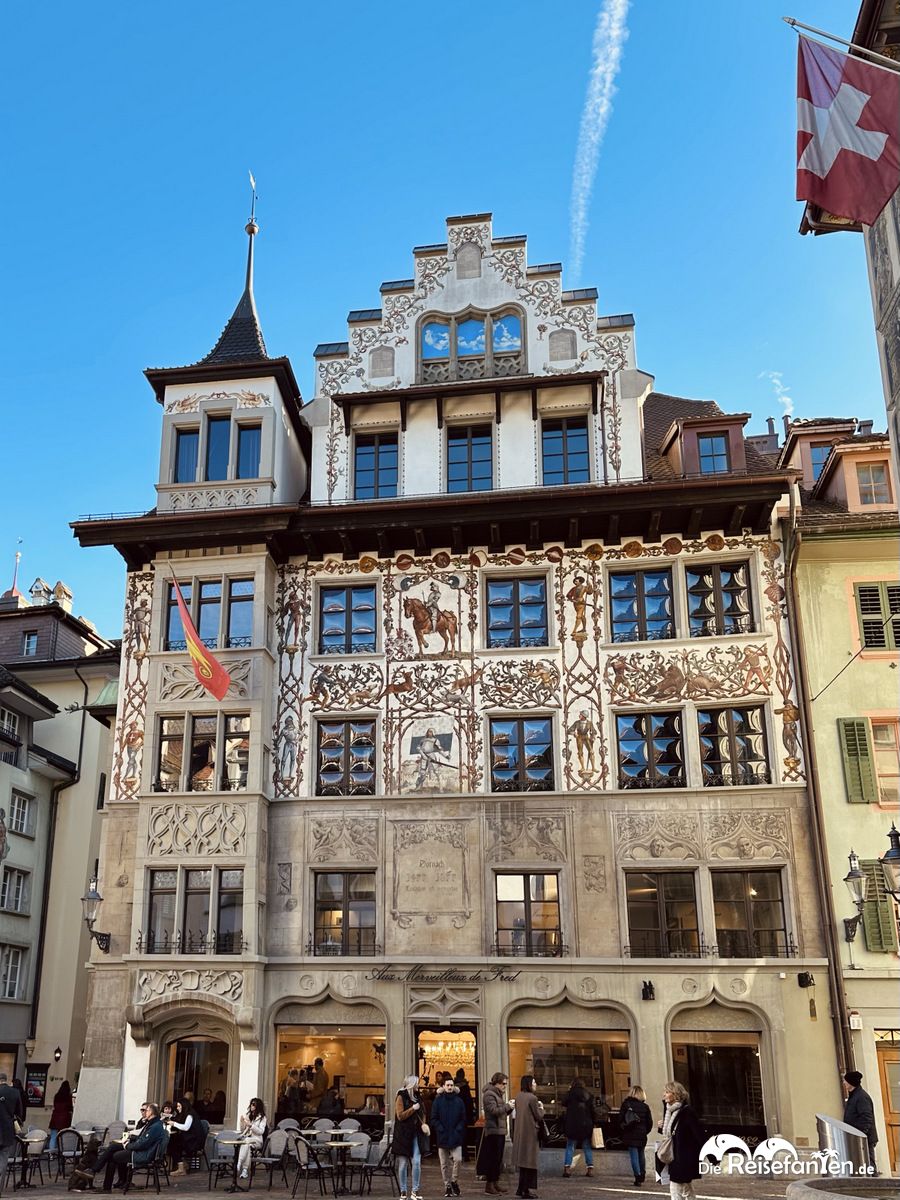 Die Altstadt von Luzern ist sehr schön und so sahen wir uns gestärkt dort etwas genauer um. Die gut erhaltenen Gebäude aus dem Mittelalter und die bunten Fassaden verleihen der Stadt eine besondere Atmosphäre. Wir schlenderten durch die schmalen Gassen der Altstadt, entlang an Boutiquen und zahlreichen Schweizer Chocolatiers.