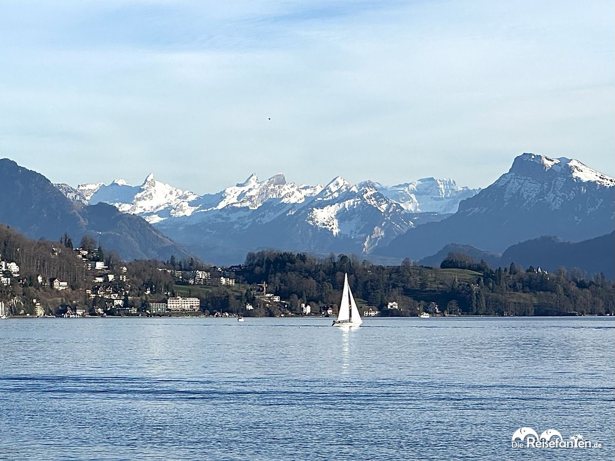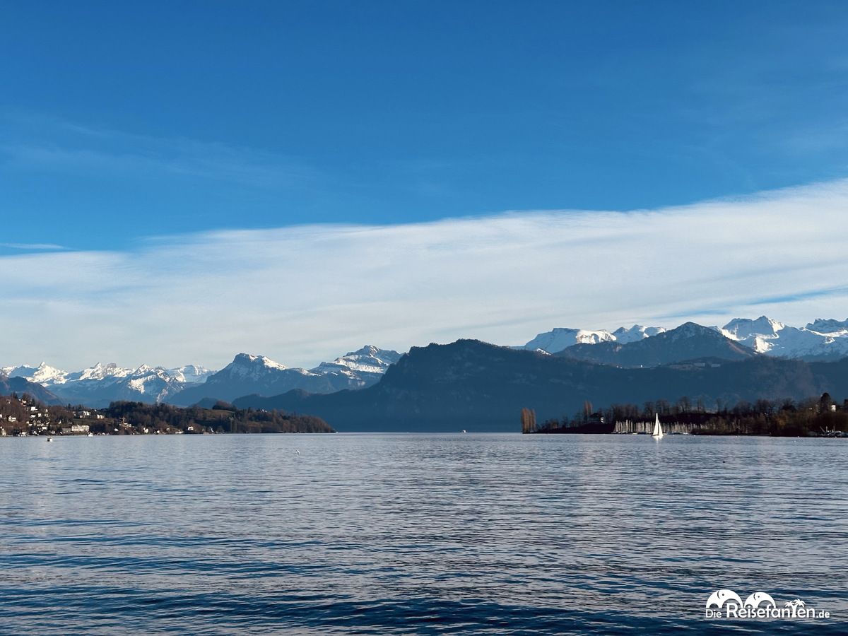 Anschließend gingen wir am Ufer des Vierwaldstädtersees entlang.  Der See erstreckt sich über etwa 38 Kilometer und ist ein zentraler Punkt in Luzern. Er bietet sich zum Segeln an und im Sommer gibt es hier auch Badeanstalten. Mit den Bergen im Hintergrund ergibt sich auch hier ein tolles Panorama. Man kann hier ganz wunderbar Spazierengehen.
