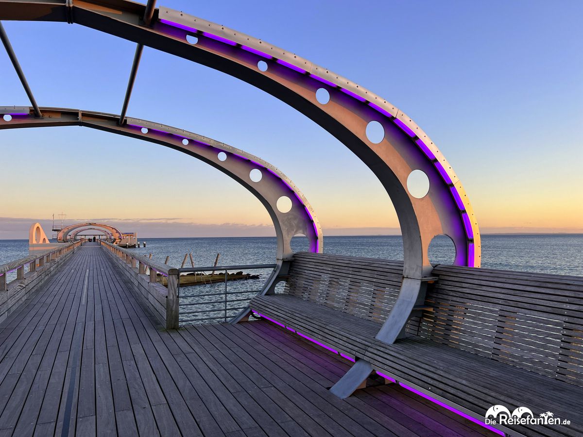 Ostseebad KellenhusenZentraler Punkt im kleinen und beschaulichen Kellenhusen ist die Seebrücke. Das Exemplar in Kellenhusen ist besonders schön und zudem einmalig, denn eine solch beleuchtete Seebrücke findet man in anderen Küstenorten nicht vor. Vor einigen Jahren wurde sie aufwendig modernisiert und mit LED Lichtern ausgestattet, die sich in unterschiedlichen Farben einstellen lassen. Mal etwas ganz anderes und außergewöhnliches.
