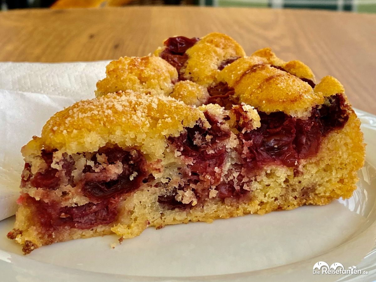 Wir durften uns im Café die Kuchen ansehen und anschließend unsere Bestellung aufgeben. Latte Macchiato und dazu ein Stück Käse- und Kirschkuchen. Die Servicekraft kam diverse Male an unseren Tisch und brachte jeweils einen Kaffee oder einen Kuchenteller. Mit der Zeit war es amüsant, ganz verstanden haben wir es aber nicht. 🙂