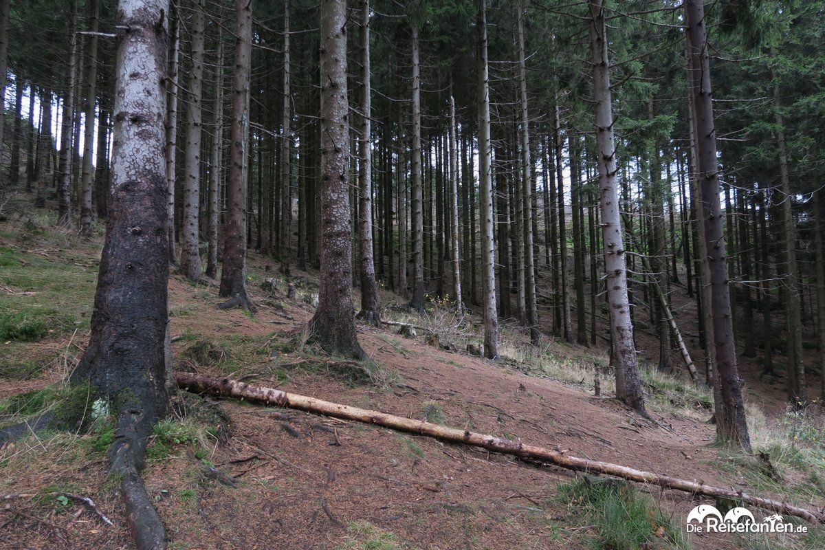 Was eigentlich zur Abstiegsetappe unserer Wanderung werden sollte, entpuppte sich nun als für uns einzige Aufstiegsmöglichkeit zum Kästehaus an diesem Tag. Von Romkerhalle aus führt nämlich ein nur wenige Kilometer kurzer, aber sehr steiler Weg zum Kästehaus hoch – dieser hat es aber wirklich in sich. Da es am Vortag geregnet hatte, war nicht nur der Weg ordentlich aufgeweicht und es bildeten sich so manche Wasserläufe, sondern dementsprechend rutschig war die ganze Angelegenheit auch für uns. Wir waren wirklich froh, dank unserer Wanderschuhe trittsicher unterwegs zu sein.