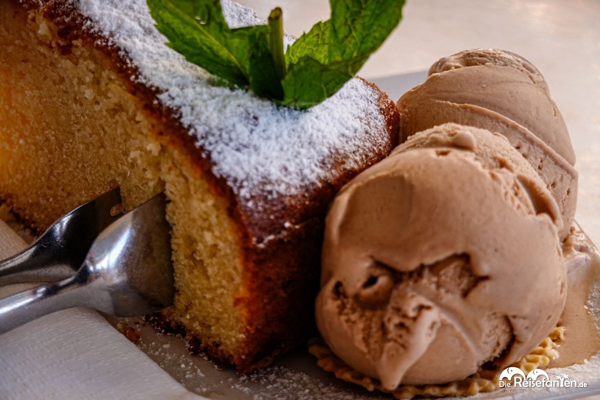 Nach dem Bummeln und Schlendern auf dem Markt ging’s weiter nach Cala Millor. Die lange Bucht mit ihrem glasklaren Wasser und der gepflegten Promenade war einfach traumhaft. Wir schlenderten am Wasser entlang, genossen den Blick auf das türkisfarbene Meer und die feinen Sandstrände. Besonders gefallen hat uns, wie lebendig und doch entspannt dieser Ort wirkt. Beim Spazieren fiel uns auf, dass hier jede Menge Restaurants, Bars und kleine Läden lockten – perfekt, um einfach die Seele baumeln zu lassen. Zwischendurch haben wir in einem kleinen Café im Schatten einen mallorquinischen Mandelkuchen, den Gato Mallorquin, genossen. Warm, süß, dazu noch zwei Kugeln Haselnusseis – einfach zum Verlieben. Ein echtes Geschmackserlebnis, das unsere Reise noch süßer gemacht hat.