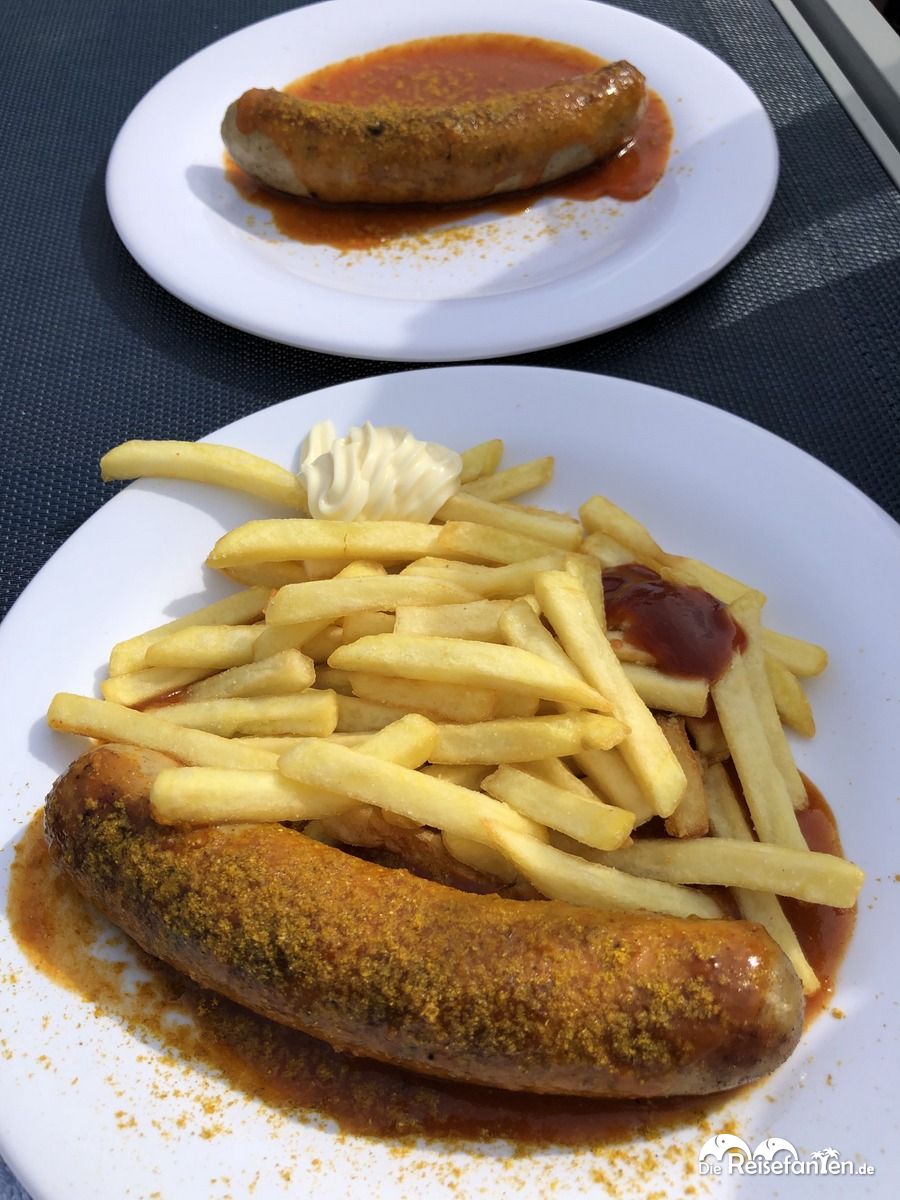 Wir waren wahrlich nicht oft über die Mittagszeit an Bord des Schiffes, aber wenn, wurde meist ein Lunchbuffet am Pooldeck (inkl. Melonenschnitzereien) aufgebaut, wo es leichte Speisen wie Salate, Fisch und Baguette gab. Wer mochte, konnte sich aber auch ein Panino oder Burger ergattern, einmal wurde als Aktion sogar Currywurst angeboten.