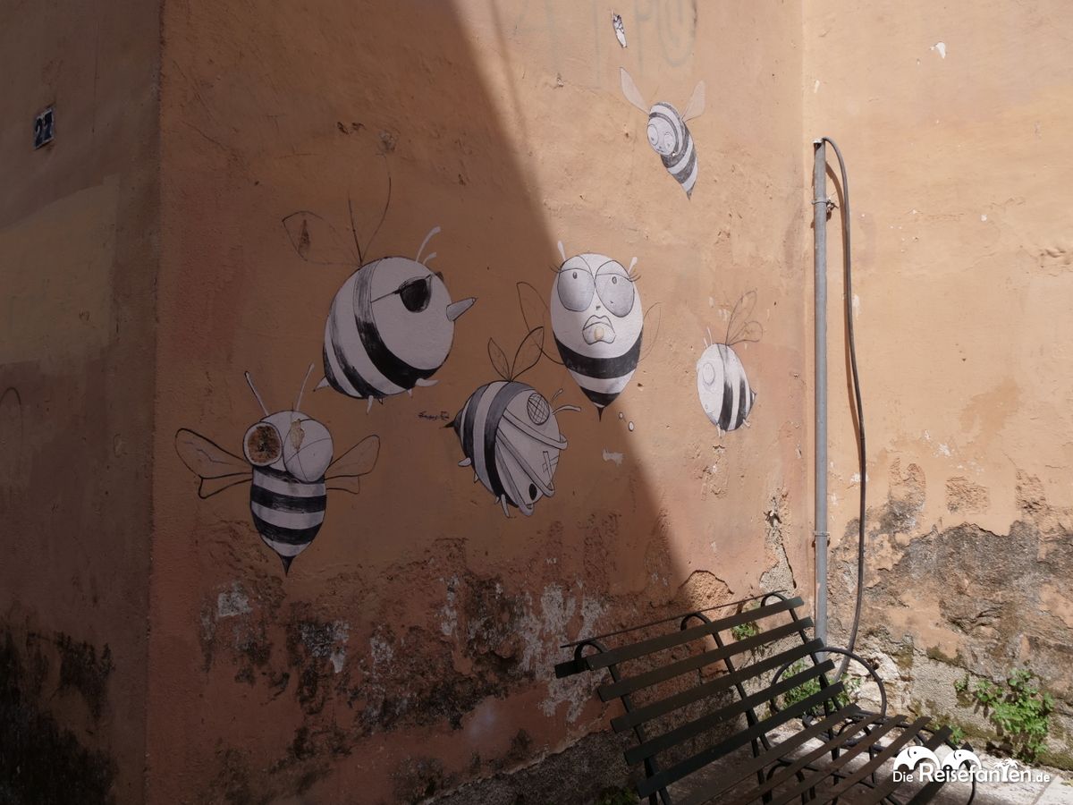 Ein besonderes Problem in Griechenland ist, dass Graffiti selbst an historischen Gebäuden und antiken Denkmälern vorgenommen wird. Wir hatten in Athen ja schon so einiges dazu gesehen. Dies beschädigt nicht nur die Schönheit dieser Orte, sondern auch deren kulturellen Wert. Ein weiteres Problem ist, dass Graffiti gerne auch mal zur Verbreitung gewaltverherrlichender oder Hass-Botschaften verwendet wird. Auch wenn wir die Botschaften in Griechenland eher selten verstanden – auch auf Korfu sind wir über viel Graffiti gestolpert. Man kann sich praktisch gar nicht dagegen wehren, was gerade in historischen Ecken wirklich den Gesamteindruck deutlich trübt. Aber seht selbst: