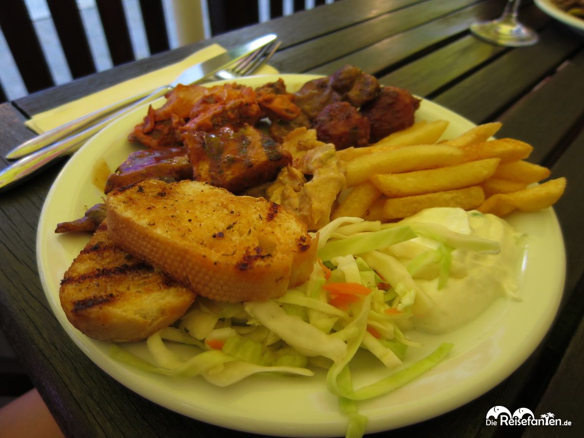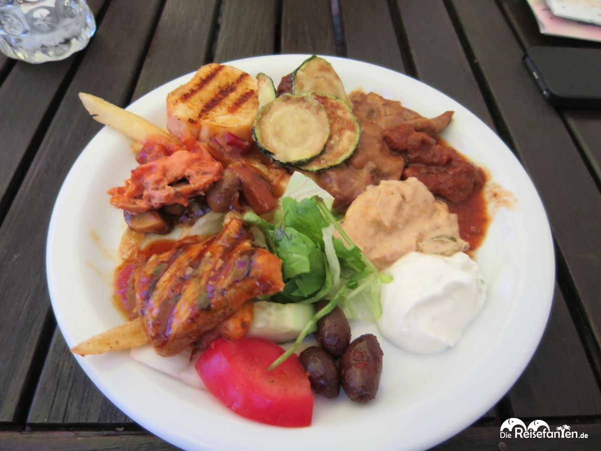Das All you can eat Angebot im griechischen Restaurant Helios umfasste ein umfangreiches Buffet mit einem Salatbuffet und vielen warmen Speisen. Von Souvklavi über Gyros bis hin zu Bifteki, hier findet man alle leckeren Speisen, die jeder Grieche auf der Karte hat, wieder. Selbst Nachspeisen fehlten selbstverständlich nicht. Und das Beste: alles schmeckte super lecker – eben wie beim guten Griechen!