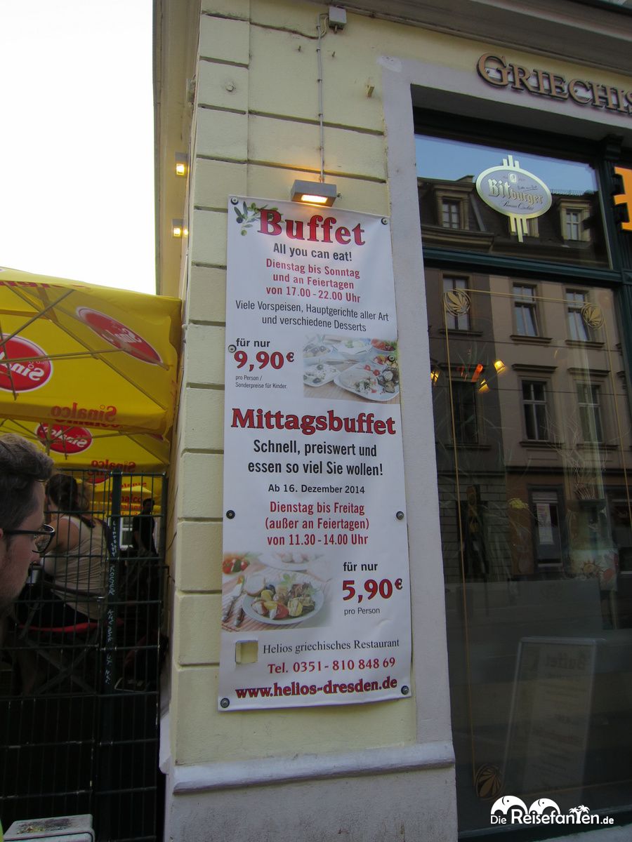 Im Dresdner Stadtteil Äußere Neustadt entdeckten wir zufällig das griechische Restaurant Helios mit seinem All you can eat Angebot. Für uns nach einem Sightseeing Tag in Dresden genau das Richtige!