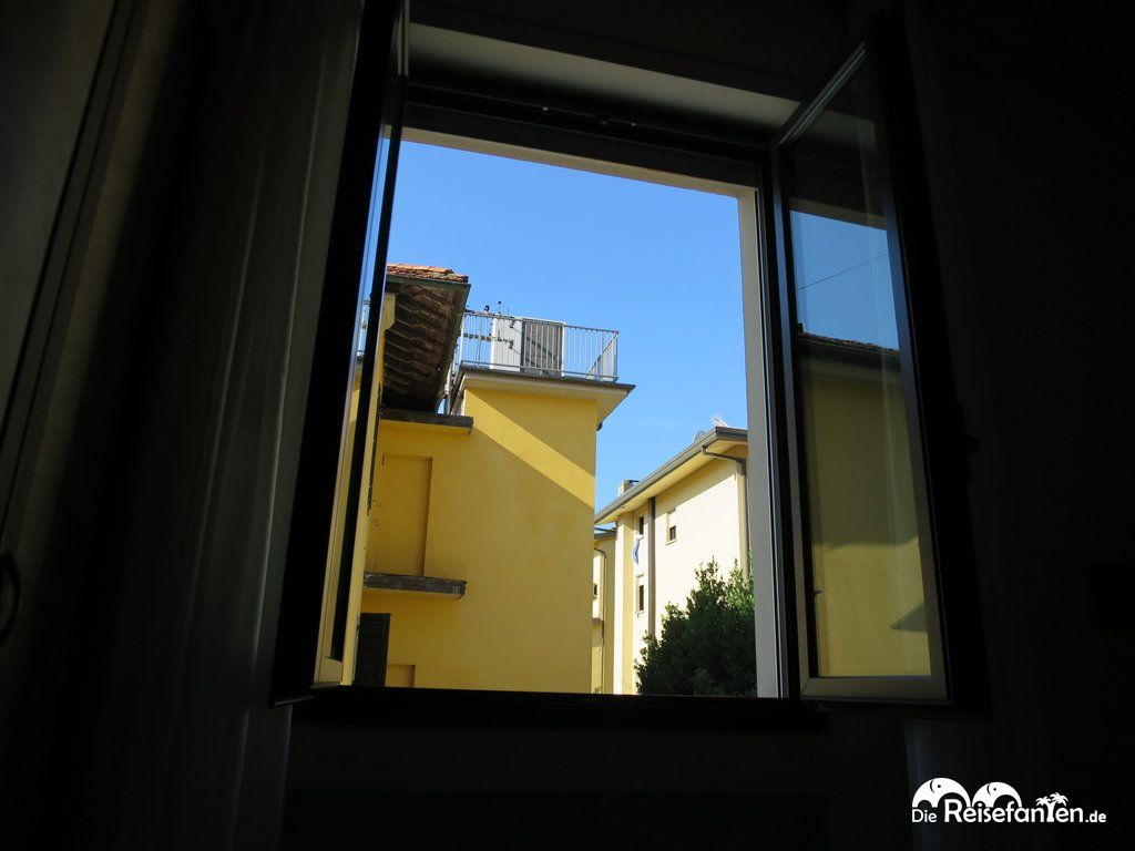 Unser Doppelzimmer war schön geräumig, es gab ein sauberes Bad mit etwas knapp bemessener Duschkabine, aber alles vollkommen in Ordnung. Wir hatten ein Zimmer „nach hinten raus“, demnach war die Aussicht nicht wirklich prickelnd. Aber dafür waren wir in Nullkommanix im Zentrum von Montecatini Terme, das Hotel Montebello liegt wahrlich zentral. So konnten wir auch mal abends den Mietwagen einfach stehenlassen und uns einen Wein im ebenfalls nahe gelegenen Ristorante Corsaro Verde gönnen.