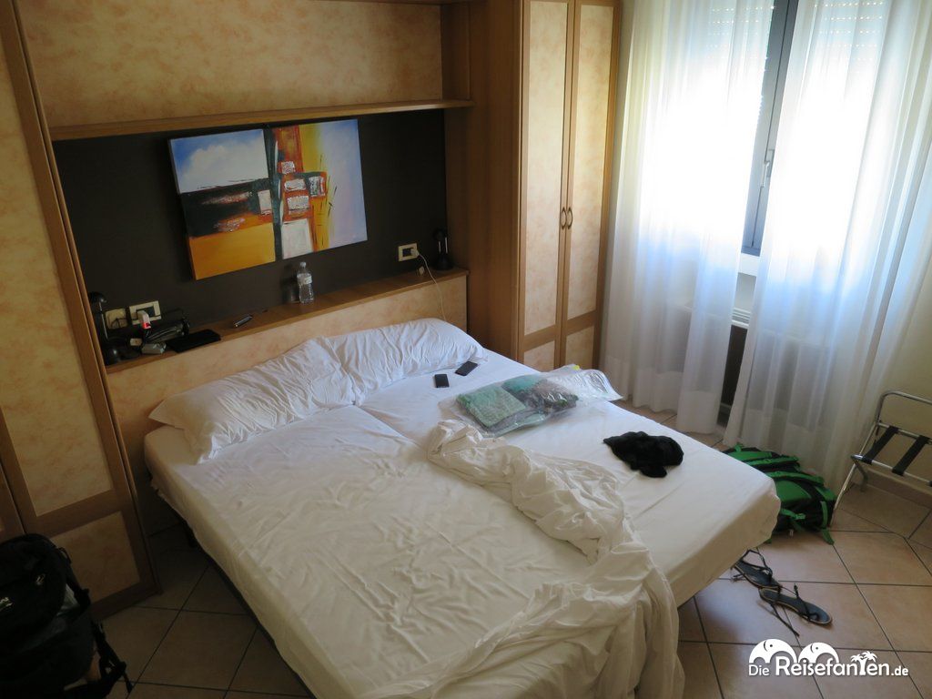 Wir buchten das Hotel Montebello wie immer von unterwegs aus dank mobilem Internet und konnten einen wahren Schnäppchenpreis in Höhe von 44 € inkl. Frühstücksbuffet für uns beide erzielen. Das Parken war leider nicht mit drin, aber für nur 6 € kauften wir uns im Hotel direkt einen Tagesparkausweis, was preislich auch noch voll im Rahmen war.