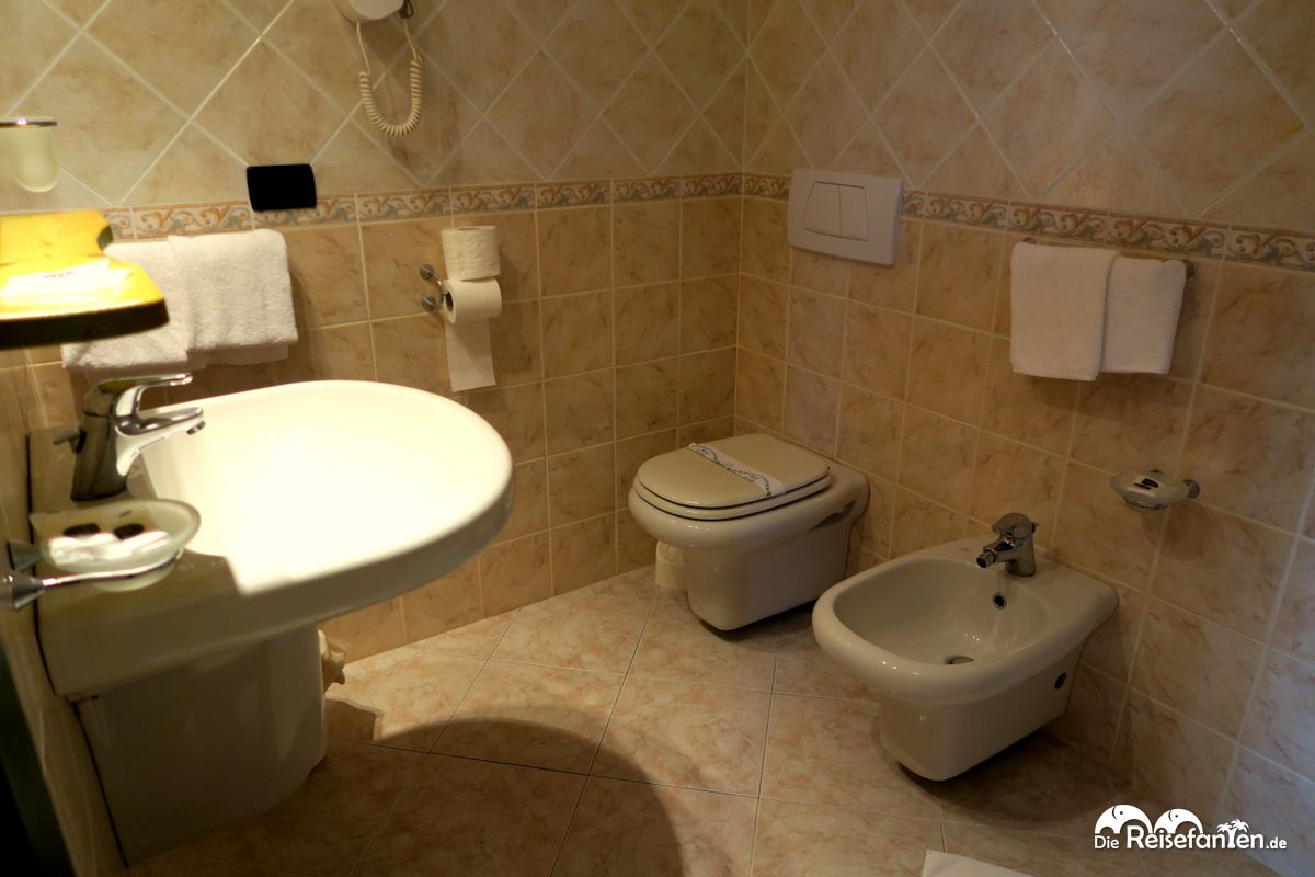 Unser Doppelzimmer im Hotel Rosa Dei Venti in Lu Bagnu war zweckmäßig im italienischen Stil eingerichtet. Auf allen Zimmer gab es kostenloses WLAN sowie eine Klimaanlage, welche ebenfalls als Heizung diente. Das Badezimmer war verhältnismäßig groß und mit einer Dusche ausgestattet. Für laue Abende gab es zudem einen kleinen Balkon mit Sitzmöbeln.