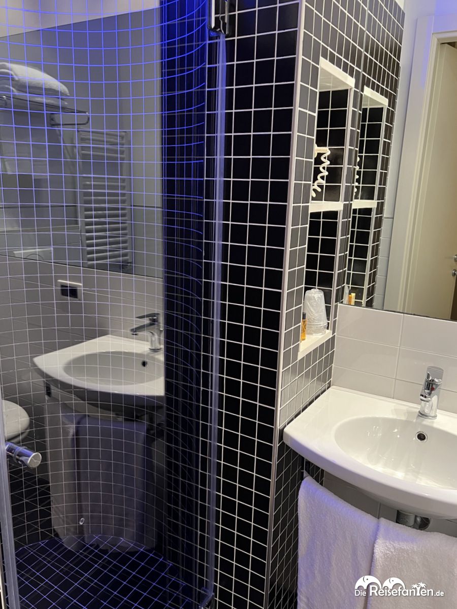 Unser modernes Doppelzimmer war in den letzten Jahren modernisiert worden und so hatten wir ein für italienische Verhältnisse recht modernes Zimmer, welches gut klimatisiert war. Das angrenzende Badezimmer war zwar recht klein aber ebenfalls modernisiert worden. Wir hatten in unserem Zimmer einen sehr erholsamen Schlaf, wenngleich die Zimmer etwas hellhörig sind und wir morgens oftmals geweckt wurden. Der guten Ordnung halber müssen wir erwähnen, dass nicht alle Zimmer modernisiert wurden. So gibt es derzeit zwei Kategorien im Hotel Universal, die im Buchungsprozess ausgewählt werden können.