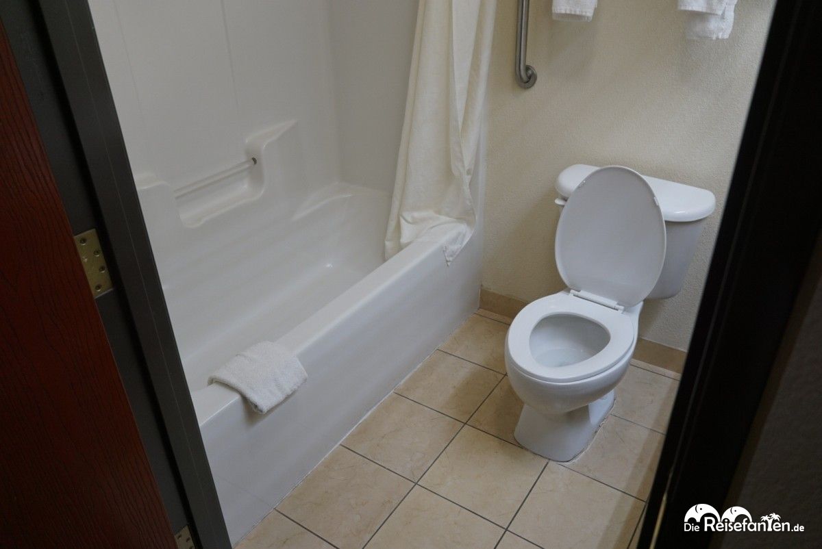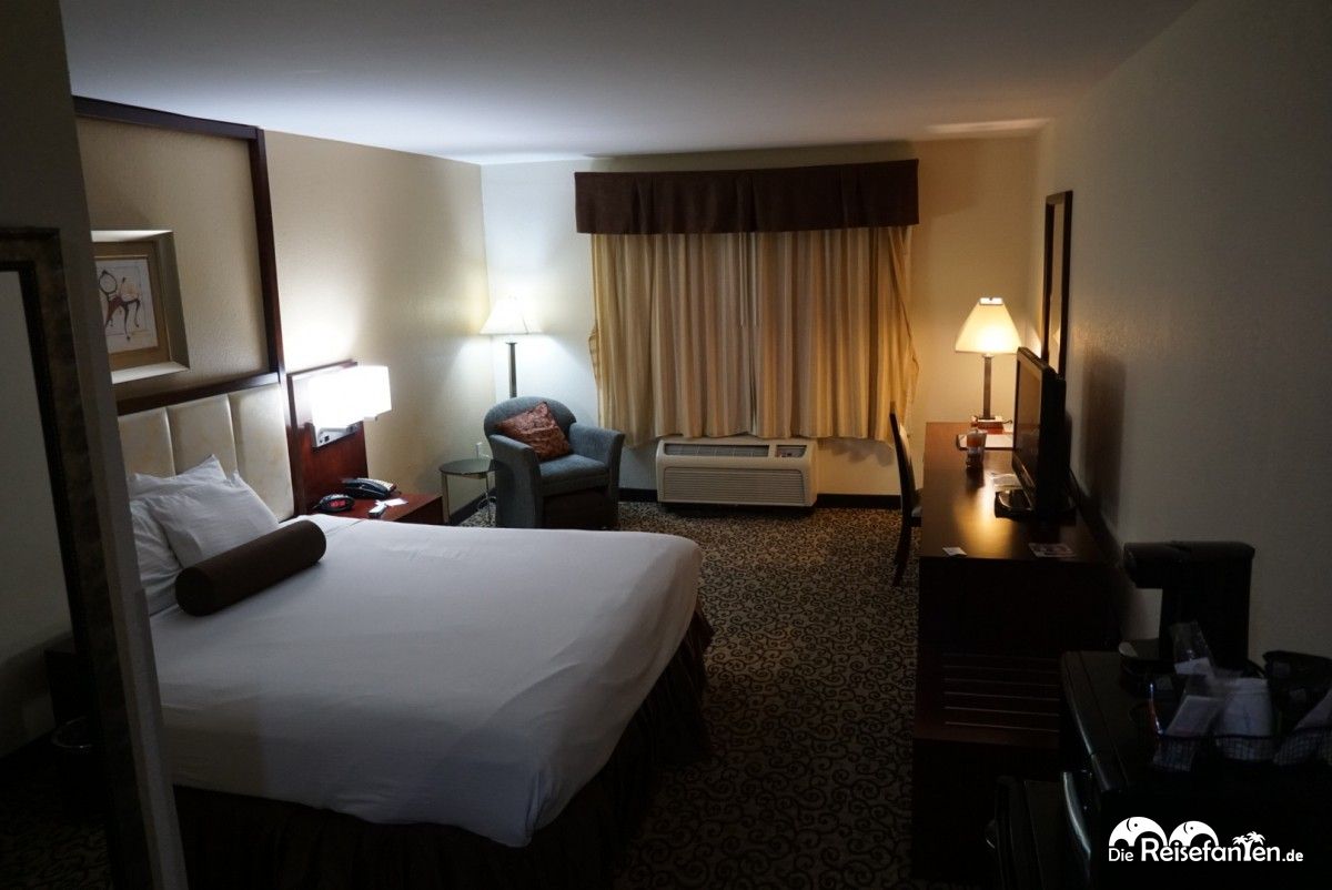 Der Check-In ging auch hier schnell und schon konnten wir unser Doppelzimmer beziehen. Der erste Eindruck war durchschnittlich, ein Standardhotel im drei Sterne Bereich. Unser Zimmer war zwar auf der einen Seite gereinigt, auf der anderen Seite standen auf den Nachttischen noch leere Getränkebecher unserer Vorbewohner und als wir den Kühlschrank befüllen wollten, fanden wir dort auch noch Chicken Wings vor. Das Zimmer war ansonsten ebenfalls durchschnittlich aber geräumig.