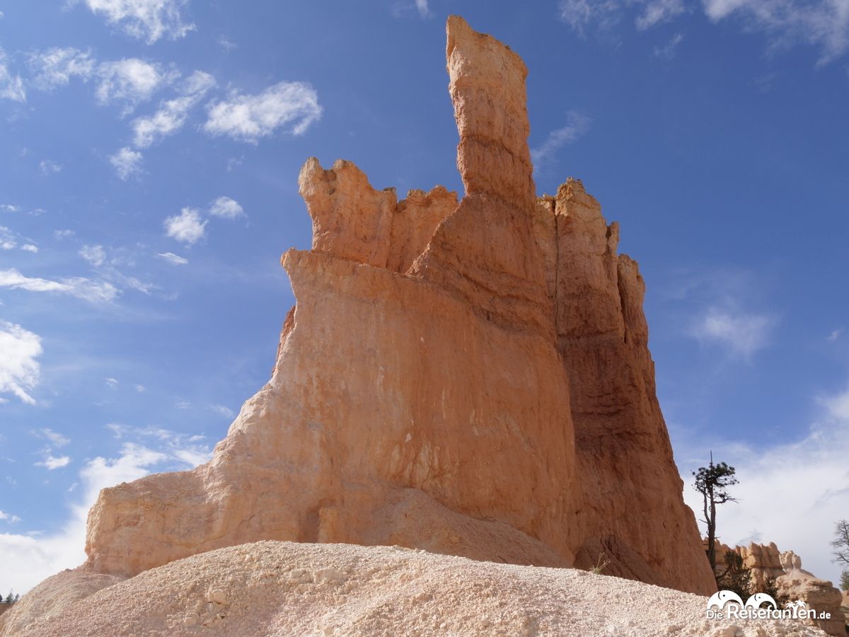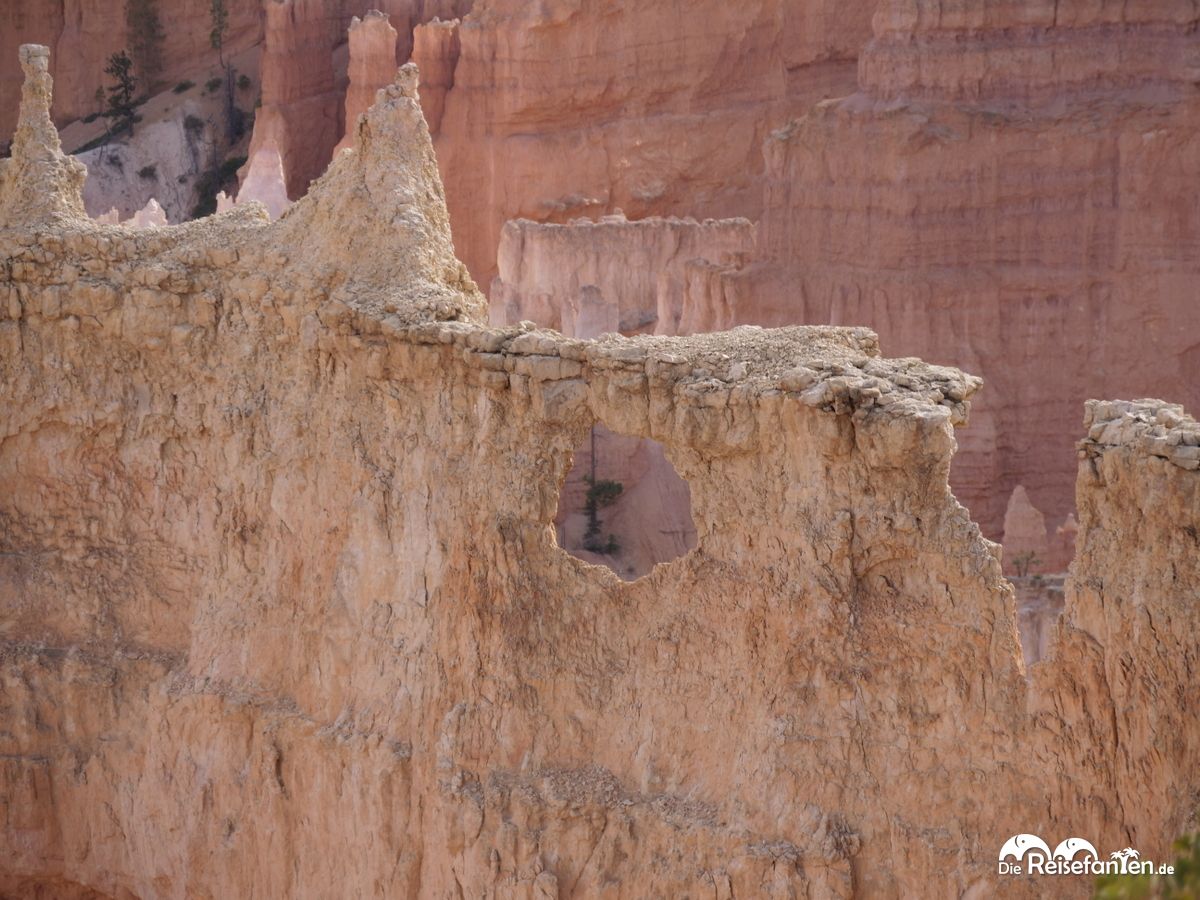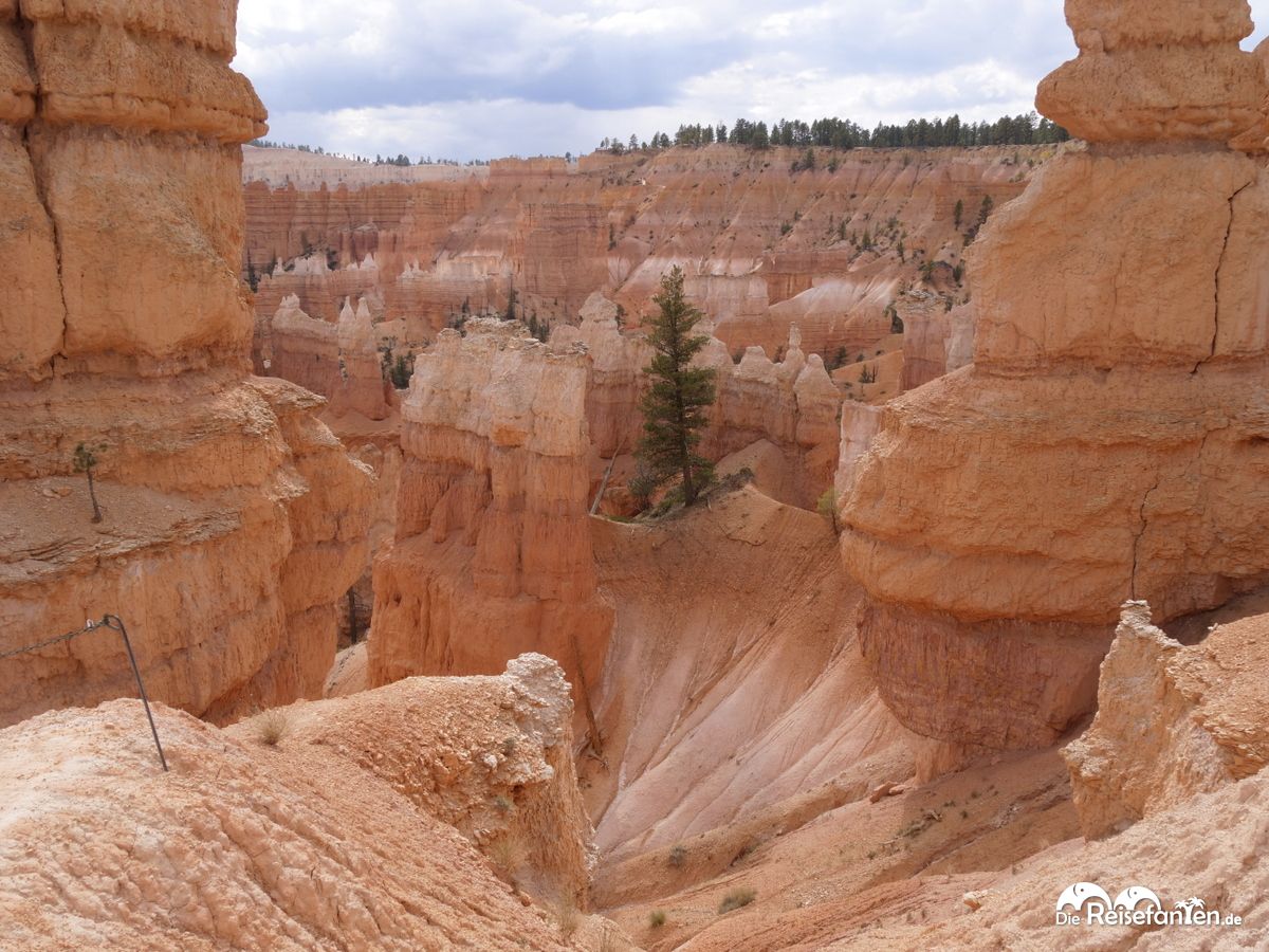 Während ihr also noch locker hinabsteigt, erwartet euch eine Fülle von Fotomotiven. Die einzigartigen Hoodoos in verschiedenen Formen und Größen ragen wie Wächter aus dem Boden. Es ist schwer zu entscheiden, wo man zuerst hinschauen soll. Zum Glück bewegen sich die guten Hoodoos nicht, so dass es mit den Fotos wunderbar klappt.