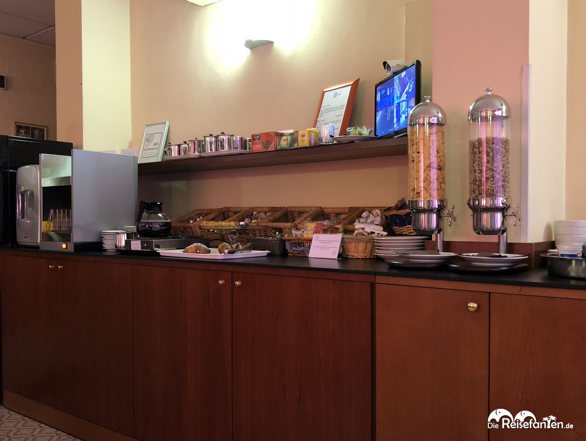 Am nächsten Morgen wurde im kleinen Frühstücksraum ein Frühstück gereicht. Das Personal legte dafür regelmäßig nach. Sitzplätze waren allerdings nur in geringer Anzahl vorhanden, zu den Stoßzeiten kann es daher etwas voll werden. Mit uns befanden sich vor allem Florenz-Touristen im Hotel. Da wir Florenz bereits kannten, entschieden wir uns gegen einen Besuch der Stadt und für die direkte Fahrt in die Toskana.