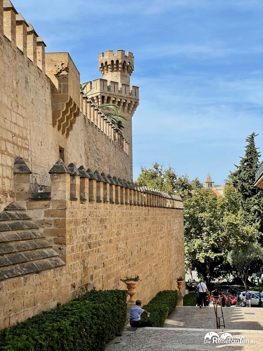 In direkter Nachbarschaft befindet sich der Königspalast, der weitere schöne Fotomotive bietet. Vor allem die Treppenaufgänge sind sehr detailgetreu geschaltet. Hier fühlt man sich ein bisschen wie in Game of Thrones. 🙂 Der Außenbereich lohnt sich auf jeden Fall. Sehr schön ist auch der Garten am Königspalast, der S’Hort dei Rei, der kostenlos besucht werden kann und sehr schön angelegt ist.