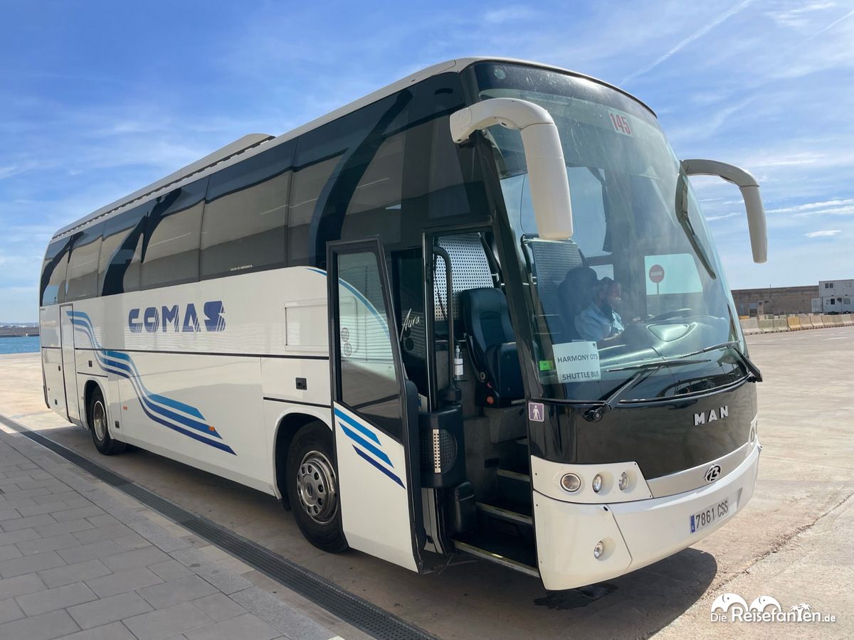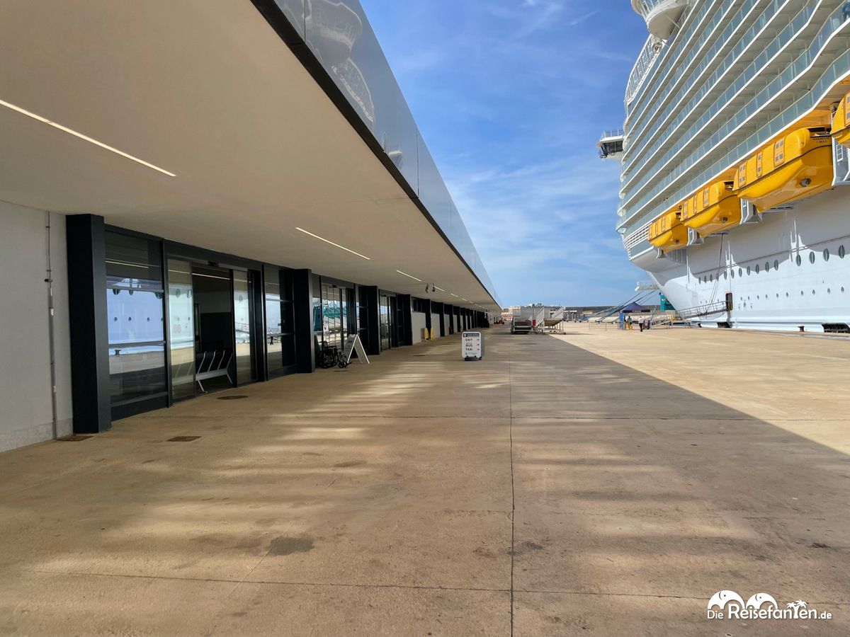 Obwohl man vom Schiff die Innenstadt Palmas gut sieht, ist die Kathedrale doch rund 6,5 Kilometer entfernt. Zu Fuß zu weit, zumal der Weg nicht sonderlich fußgängerfreundlich ist. RCCL organisierte zum Glück einen Shuttlebus vom Hafen zur Kathedrale und zurück. Tickets gab es für 10 EUR, verkauft wurden sie direkt von der Busgesellschaft im Terminal. Das Terminal sonst gab nicht viel mehr her, daher machten wir uns auch direkt auf in Richtung Palma. Am Taxistand war gähnende Leere angesagt, umso besser, dass wir mit dem Bus fahren wollten.