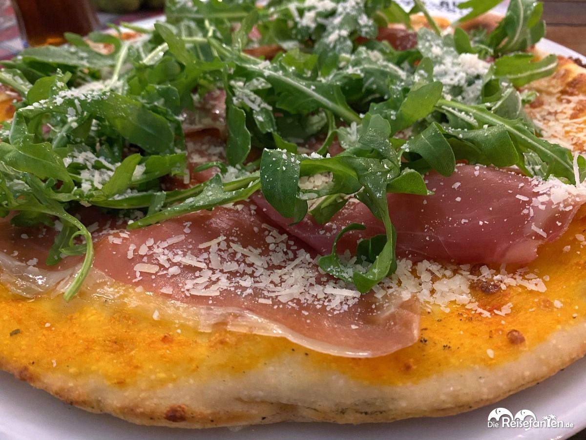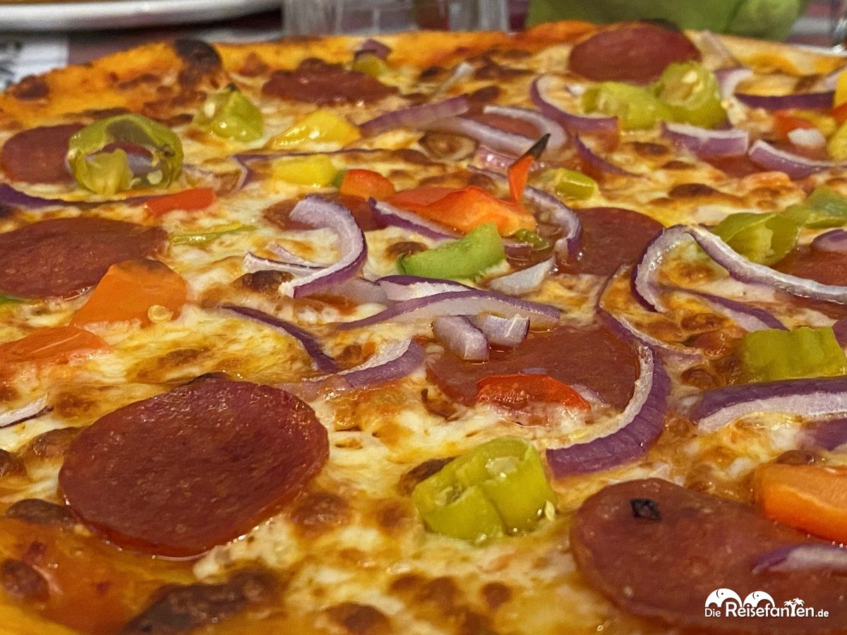 Wir wählten zwei Pizzen, eine Pizza Diavola und eine Pizza Parma, die hier als Pizza Don Genaro auf der Karte geführt wird. Statt Parmaschinken ist nämlich Serranoschinken auf der Pizza. Beide Pizzen wurden schnell zubereitet und waren sehr lecker. Vor allem die Pizza Don Genaro war sehr reichlich belegt und die Zutaten sehr frisch. Die Pizza Diavola war zurecht als pikant gekennzeichnet, die Peperoniwurst hatte eine gute Würze ohne zu scharf zu sein.