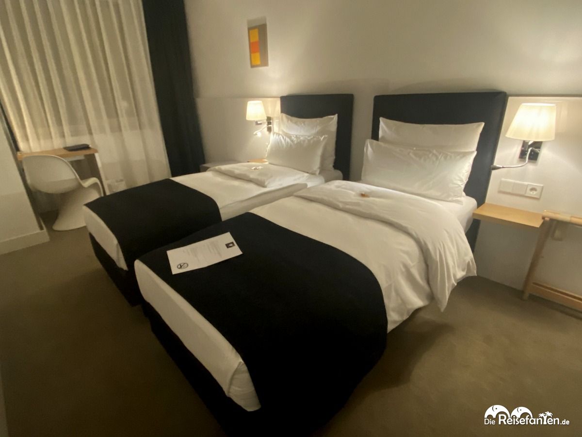 Nach einem schnellen Check-In bezogen wir unser Zweibettzimmer in der ersten Etage. Obgleich zur Straße gelegen, war es im Zimmer sehr ruhig. Das Zimmer war sehr hell und modern eingerichtet und die Betten mehr als gemütlich. Auf eine Minibar verzichtet das Hotel, dafür gibt es einen zentralen Automaten. Im Badezimmer stand uns eine Regendusche zur Verfügung und auch die entsprechenden Pflegeprodukte fehlten nicht. Einziges Manko war, dass es im Zimmer nicht allzu viel Platz gab. Für eine Nacht war das jedoch kein Problem.