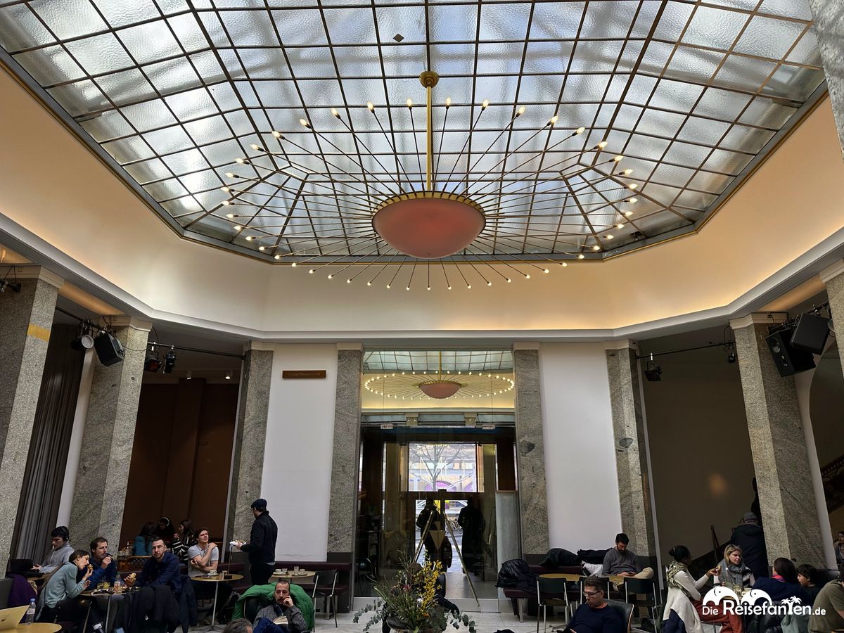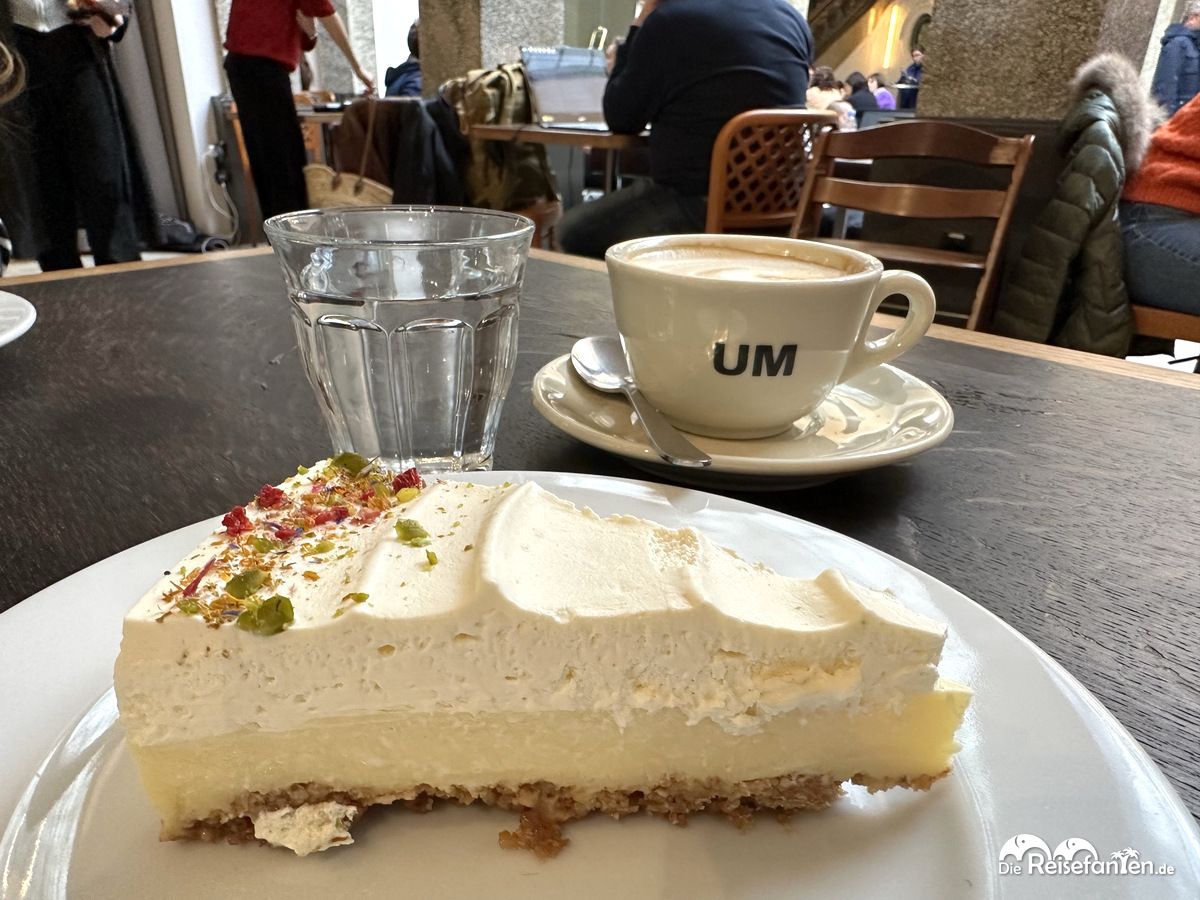 Eine Kaffeepause legten wir im Unternehmen Mitte ein. Auf dieses Kaffeehaus bin ich durch einen Fernsehbeitrag aufmerksam geworden. Das ehemalige Bankgebäude wurde in ein Kaffeehaus umgewandelt und so sitzt man da, wo früher die Kundenhalle war. Eine tolle Idee!
