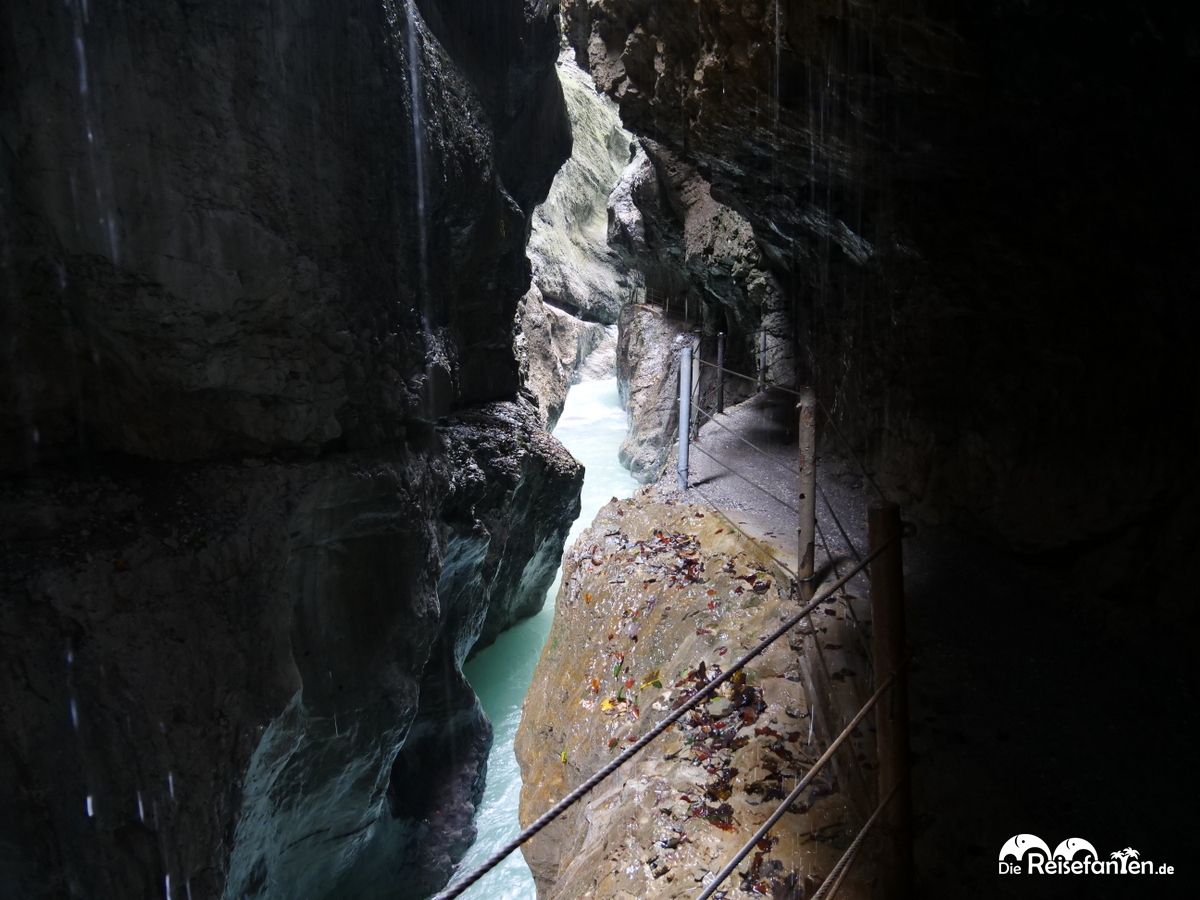Die Partnachklamm war nicht nur eng, unzugänglich und schroff – stellenweise war es aufgrund des tosenden Wassers auch sehr laut. Kaum vorstellbar, dass hier nicht nur Holz hindurch transportiert, sondern auch Arbeiter auf wackeligen Stühlen herabgelassen wurden, um verkeilte Baumstämme wieder gangbar zu machen. Wir waren jedenfalls nachhaltig beeindruckt und haben noch einige weitere Bilder im Gepäck aus dem Herzen dieses Naturschauspiels in Bayern.