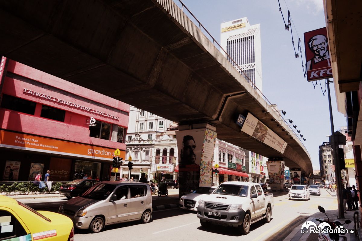 Für Malaysia und somit auch für Kuala Lumpur gilt: das Wetter ist tropisch. Kälter als 23°C wird es hier das ganze Jahr über nicht, dazu kommt eine für Asian bekannte hohe Luftfeuchtigkeit. Bei unserem Besuch blieben wir zwar von den obligatorischen Gewittern verschont, aber dennoch war es eine sehr schweißtreibende Angelegenheit. So fuhren wir zunächst in den klimatisierten Nahverkehrszügen zu den berühmten Batu Caves (wir berichten darüber in Kürze), fuhren an den Petronas Towers vorbei und ließen uns ein wenig durch Chinatown und die Straßen Kuala Lumpurs treiben. Wir entdeckten Büro- und Wohngebäude, sahen den schlammigen Fluss der Stadt (daher auch der Name Kuala Lumpurs, der ungefährt schlammige Flussmündung bedeutet) und konnten schöne Kontraste in dem Gewusel dieser Großstadt ausmachen. Hier ein paar Impressionen unseres Streifzugs durch die malaysische Metropole.