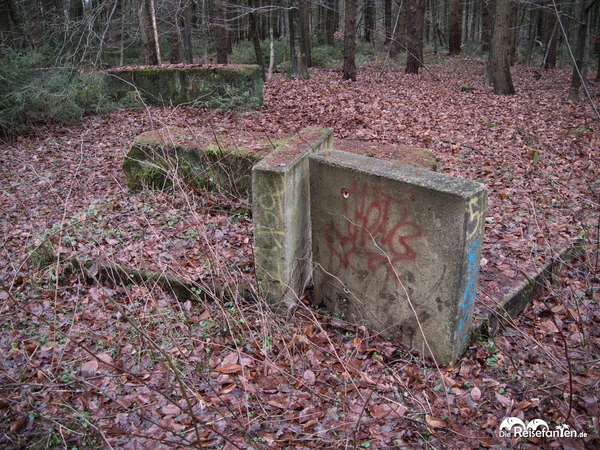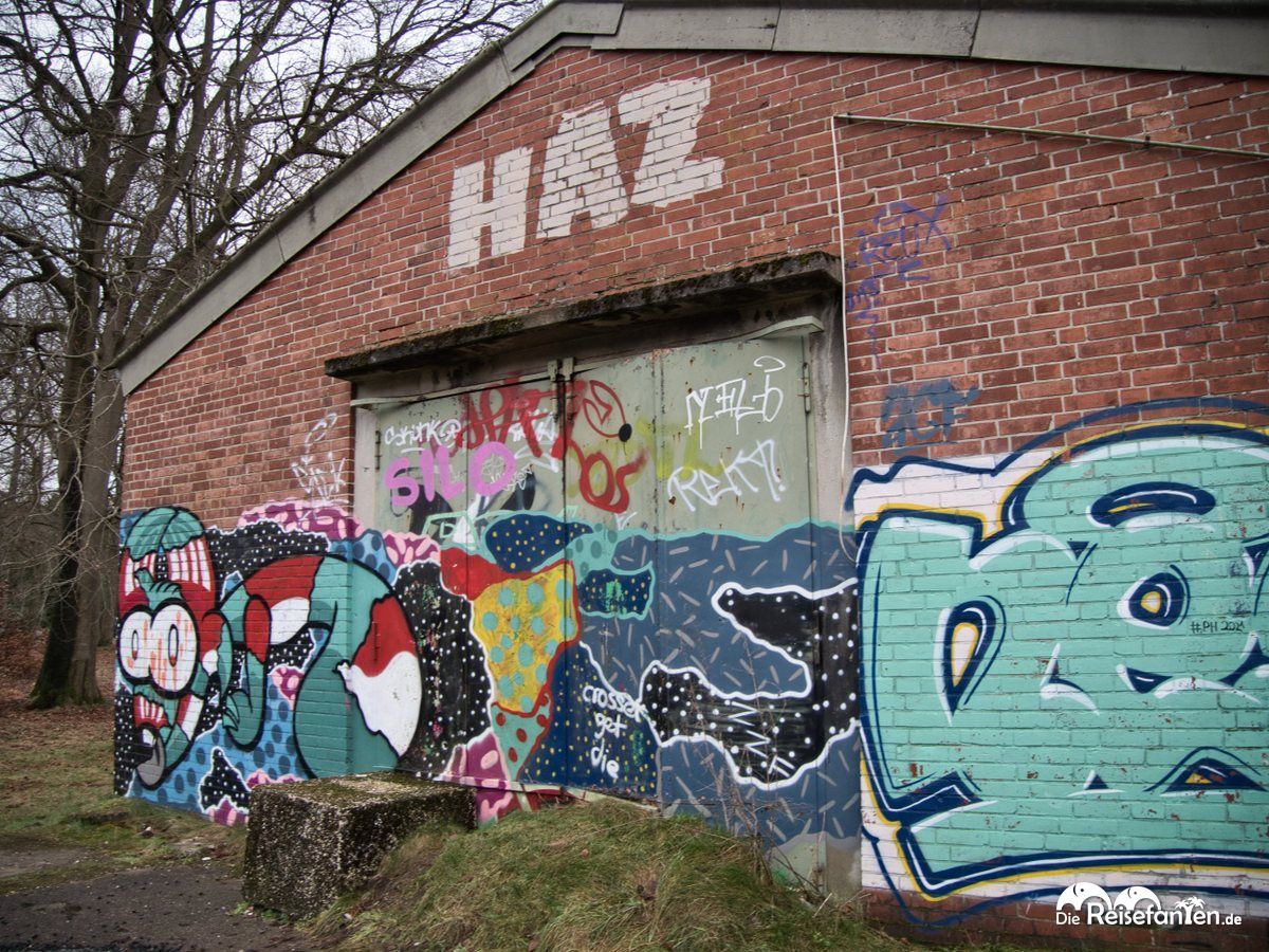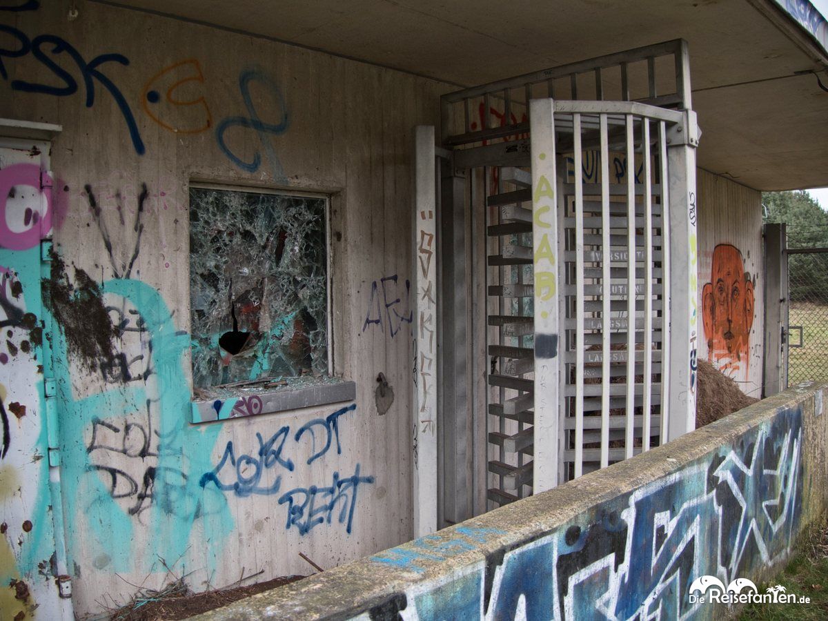 Schon der Weg zum Gelände der Muna Dünsen war recht abenteuerlich, verlief er doch durch einen Wald – stillgelegte Bahnschienen inklusive. Irgendwann kamen wir dann über einen kleinen Trampelpfad zum Eingangstor des ehemaligen Militärgeländes.