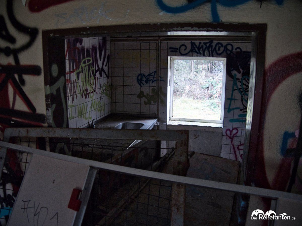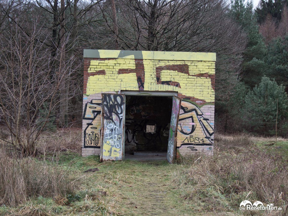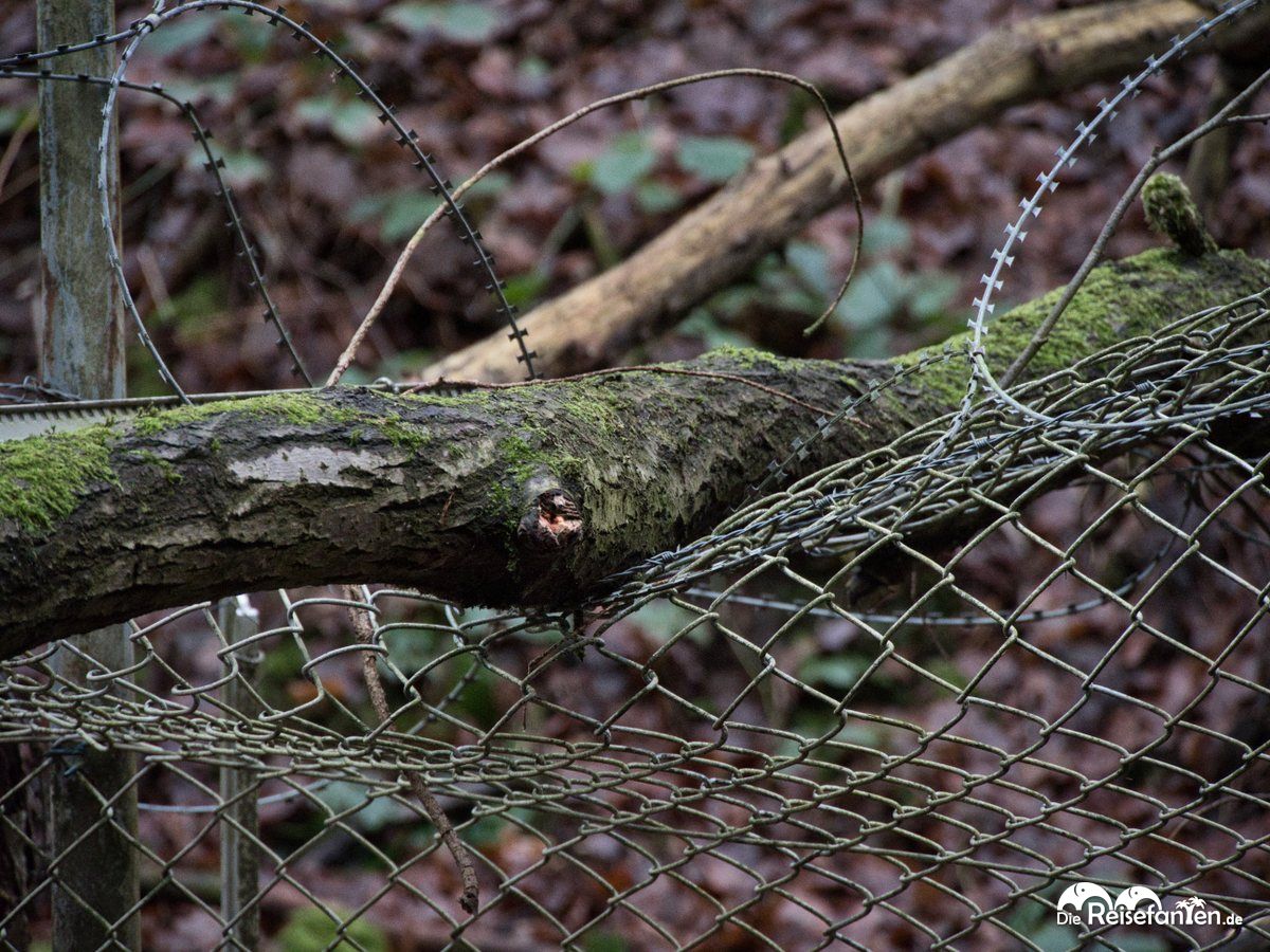 Schon der Weg zum Gelände der Muna Dünsen war recht abenteuerlich, verlief er doch durch einen Wald – stillgelegte Bahnschienen inklusive. Irgendwann kamen wir dann über einen kleinen Trampelpfad zum Eingangstor des ehemaligen Militärgeländes.