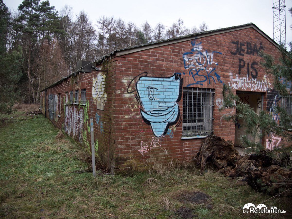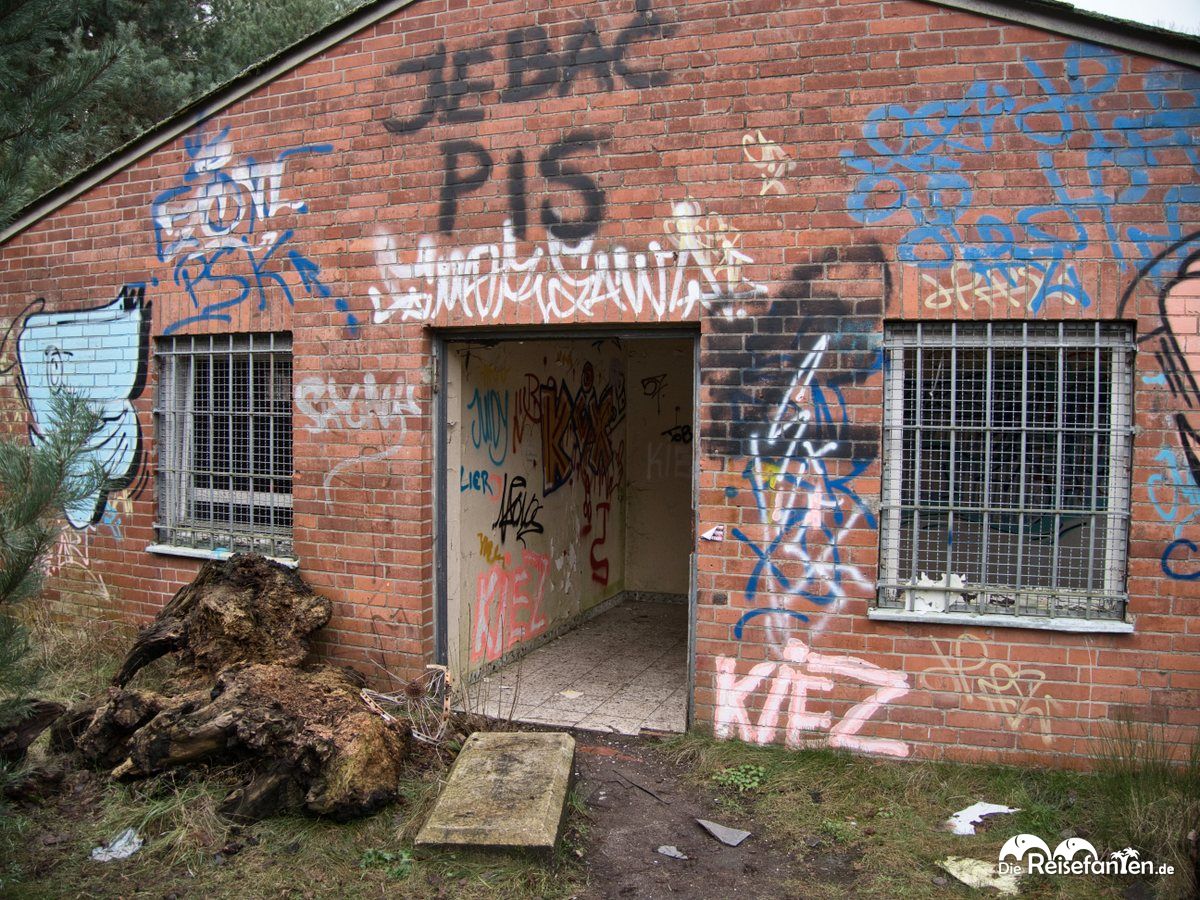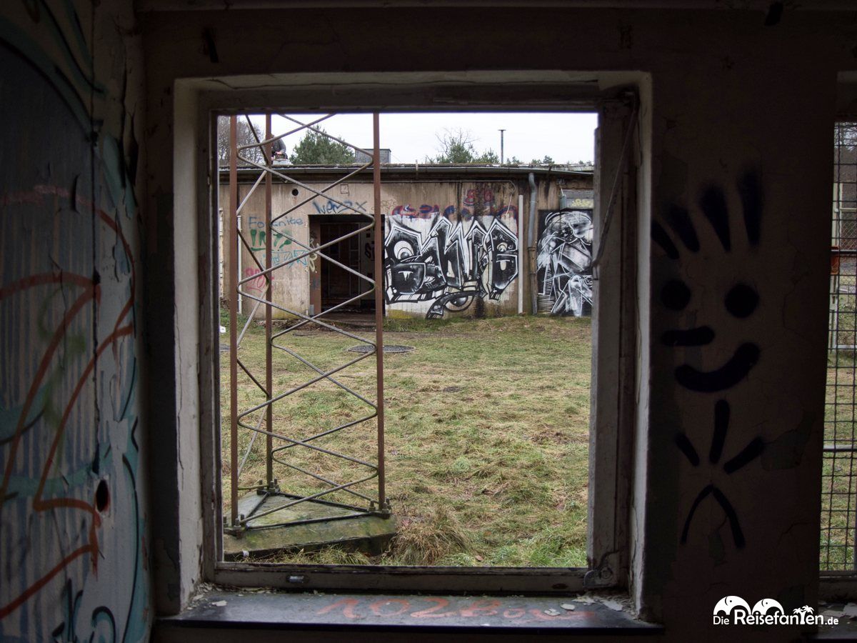Auf dem Gelände selbst befinden sich Gebäude, Hallen und sogar Atomwaffenbunker – alle in erwartungsgemäß mit Graffiti beschmiertem und verwahrlosten Zustand.