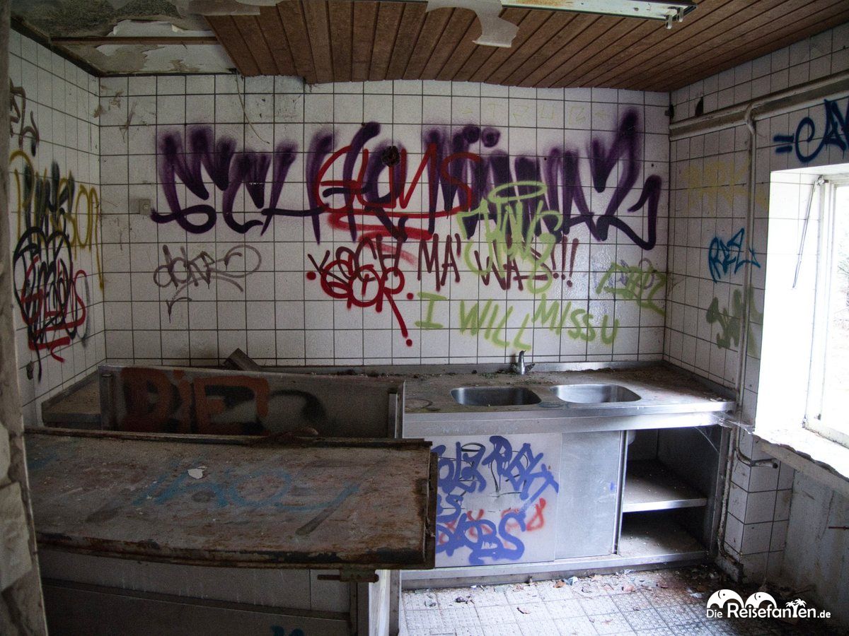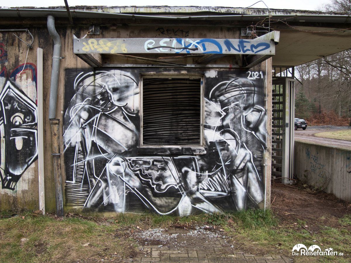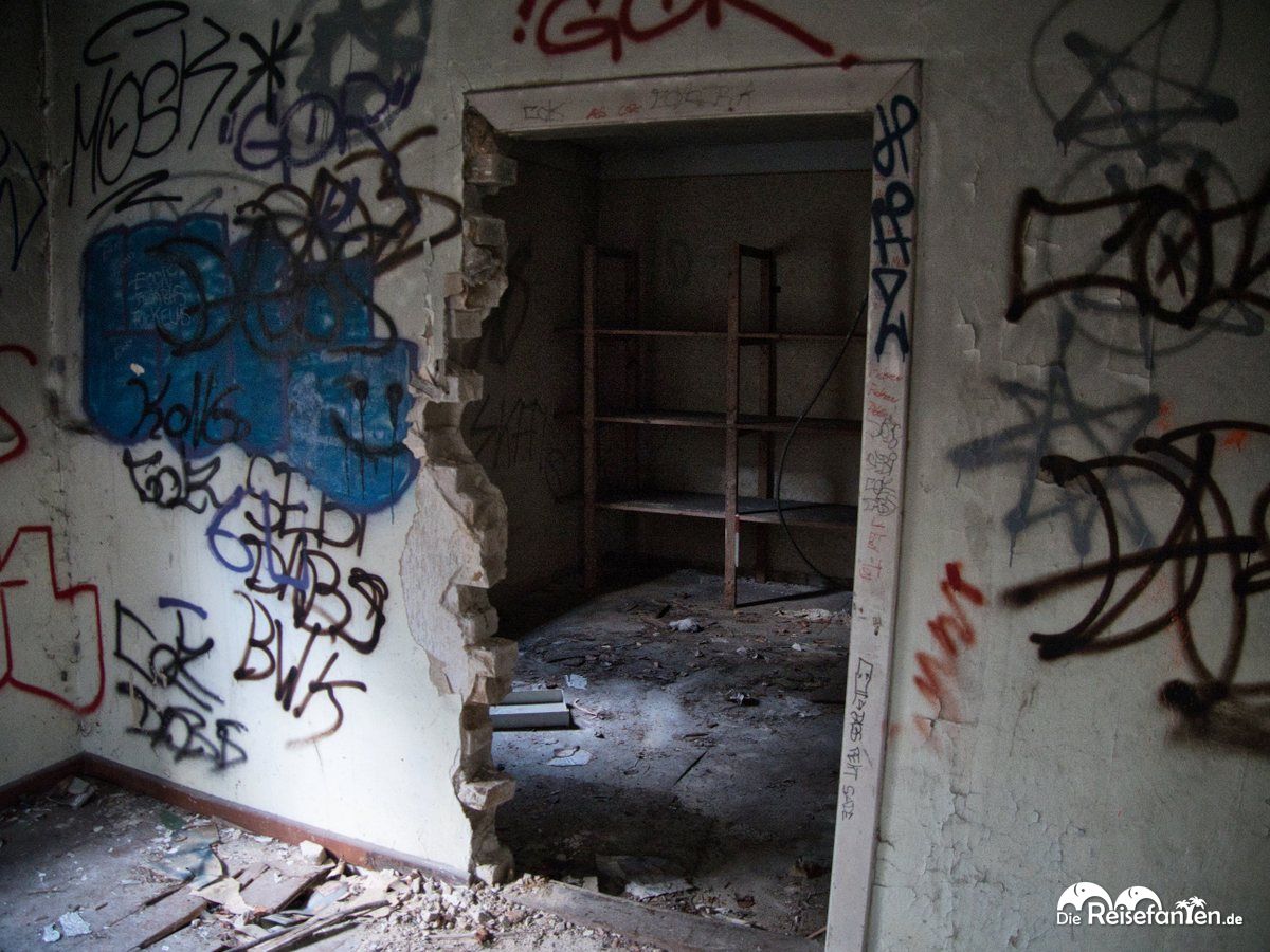 Auf dem Gelände selbst befinden sich Gebäude, Hallen und sogar Atomwaffenbunker – alle in erwartungsgemäß mit Graffiti beschmiertem und verwahrlosten Zustand.