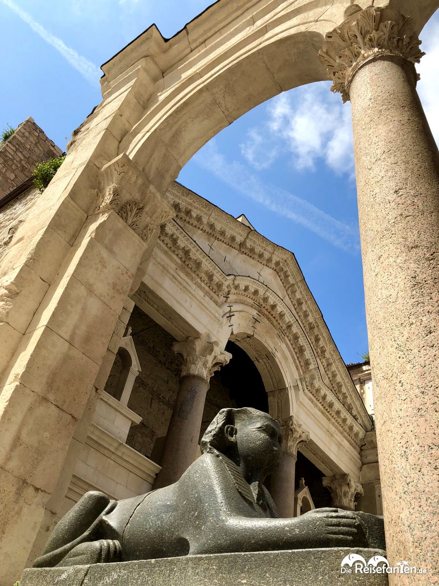 Split hat rund 160.000 Einwohner und die Innenstadt gehört zum UNESCO Weltkulturerbe. Die wohl bekannteste Sehenswürdigkeit der Stadt ist der Diokletianpalast, den wir uns als erstes ansehen wollten. Zur Römerzeit wurde dieser Palast errichtet und sollte dem römischen Kaiser Diokletian als Alterssitz dienen. Nach der Römerzeit wurde der Palast zu einer Festung umfunktioniert und heute bildet er die Innenstadt von Split. Architektonisch ist der Palast ein Highlight mit zahlreichen unterschiedlichen Elementen.