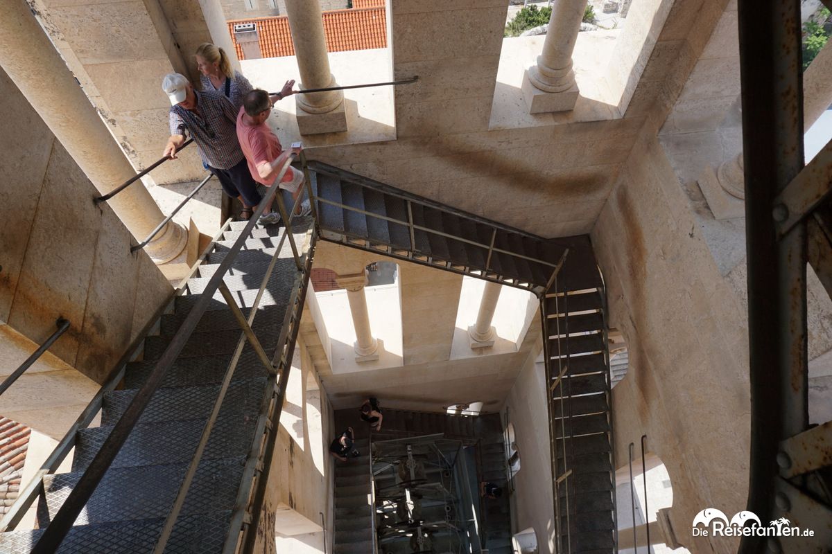 Wir ließen uns erst ein bisschen treiben und entschieden uns dann dafür, den Glockenturm der Kathedrale zu besteigen, für eine Aussicht auf Split. 10 Kuna kostete der Eintritt, dafür kann der 57 Meter hohe Glockenturm zu Fuß und mit Gegenverkehr bestiegen werden. Wir hatten Glück und es war nicht allzu voll, ansonsten kann es schonmal schwierig werden. Der Aufstieg lohnt sich aber, denn der Blick auf Split ist toll. Aber seht selbst: