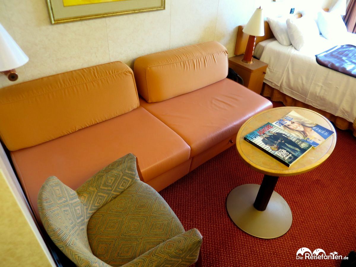 Unsere rund 20 qm große Außenkabine war bestens ausgestattet: ein sehr bequemes Doppelbett, eine Sitzecke, die eine weitere Schlafmöglichkeit darstellen kann, viele Ablageflächen und Schränke für ausreichend Stauraum und ein ansprechendes Badezimmer – da kann man den Aufenthalt an Bord der Carnival Glory ja nur genießen. Highlight war natürlich der Blick aufs Meer, den man auch vom Bett aus auskosten konnte.