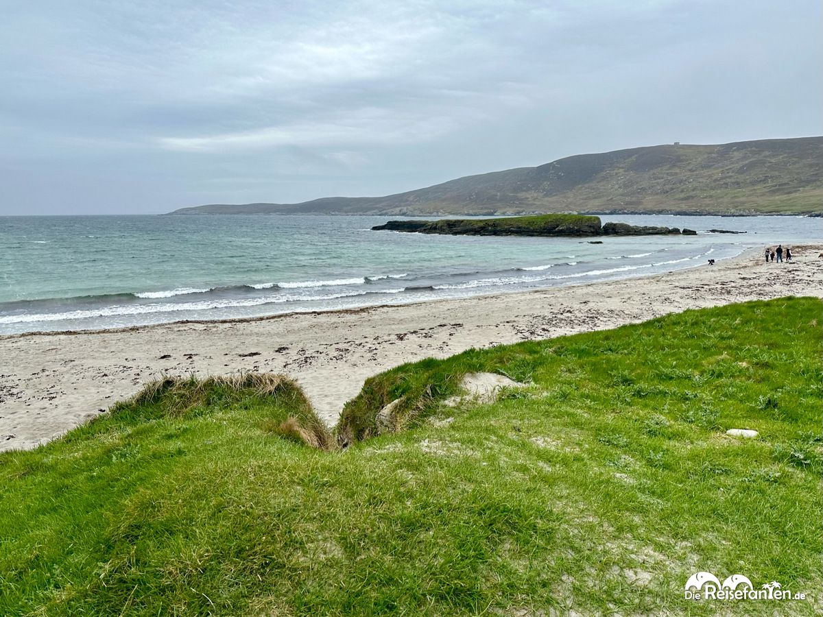Wir dehnten unseren Rundgang etwas aus und steuerten zunächst das Loch Clickimin an. Loch steht für See und hier trafen wir auf Vogelbeobachter aber auch auf ganz viel Natur. Der erste Gedanke ‚Man ist das Gras hier grün‘ – das hat aber wohl einiges mit dem stetigen Niederschlag und die kühlen Temperaturen zu tun. Recht windig war es auch bei unserem Besuch und so waren wir froh, dass wir Handschuhe und Mütze dabei hatten.