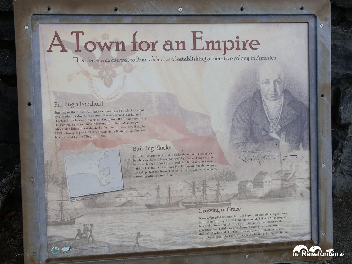 Ein kurzer Abstecher in die Innenstadt Sitkas, wo wir viele Infotafeln zu den historischen Ereignissen hier fanden.