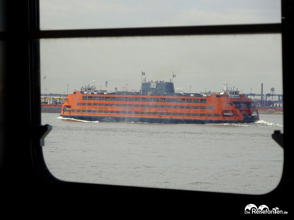 Terminal der Staaten Island FerryDie Staten Island Ferry verbindet in kurzer Taktung die New Yorker Stadtteile Manhattan und Staten Island. Was als Fortbewegungsmittel für die einheimische Bevölkerung gedacht ist, erfreut aber auch immer mehr Touristen. Jährlich nutzen rund 19 Millionen Menschen den Fährbetrieb. In rund 25 Minuten fährt man vom Whitehall Terminal im Battery Park nach Staten Island und hat dabei einen großartigen Blick auf die Freiheitsstatue – und das  kostenlos.Abfahrtsterminal der Staaten Island Ferry in New York