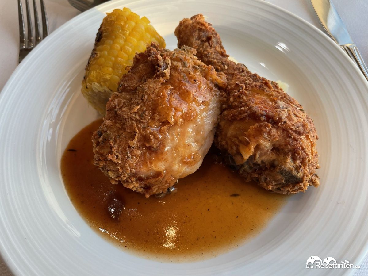 Von vorherigen Kreuzfahrten kannten wir schon ein paar Gerichte, die netterweise beibehalten wurden, z.B. Chicken oder Veal Parmesan, Southern Fried Chicken oder Chicken Cordon Bleu, aber auch Hummer und mexikanische Spezialitäten gab es an manchem Abend.