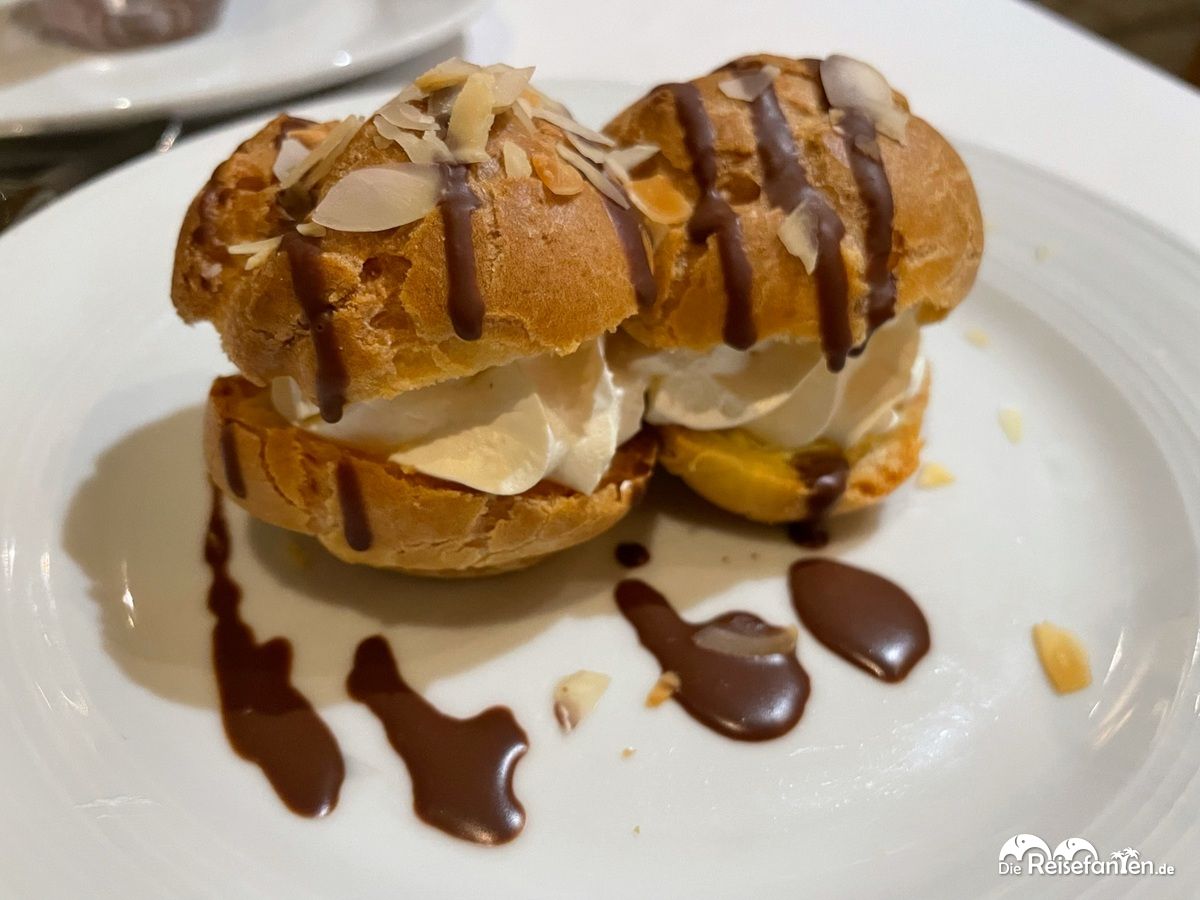 Natürlich kommt auch das süße Leben an Bord nicht zu kurz, meist hatten diese Leckereien wohl mehr Kalorien als die Gerichte zuvor, aber ein bisschen schlemmen gehört ja irgendwie auch dazu.