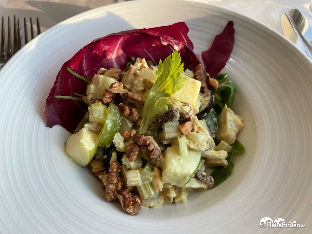 Im Bedienrestaurant, welches wir dank My Time Dining flexibel besuchen konnten, gab es immer drei Speisen zur Auswahl. Fangen wir an mit der Vorspeise, die meist aus leckeren Salaten (der empfehlenswerte Klassiker: Caesar Salad) oder kleinen Appetizern bestand: