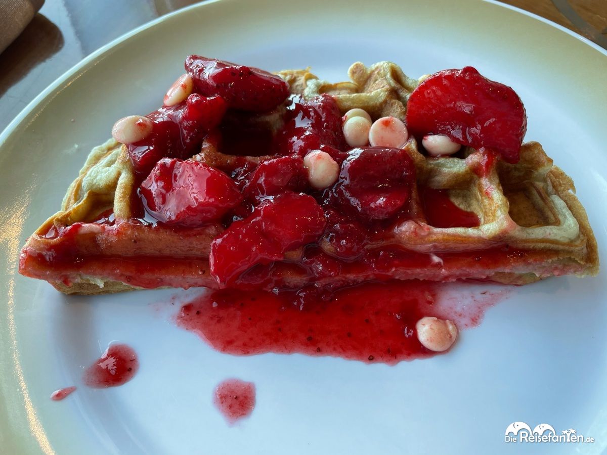 Das Frühstück nahmen wir im Windjammer Restaurant ein, also ein Buffetrestaurant, das coronabedingt aber mit Bedienung an den Stationen ablief. Auch unabhängig von der Pandemie sollte das unbedingt beibehalten werden – so bleiben die Speisen frisch, ansehnlich und es ist weniger chaotisch. Zudem kommt man auch noch mal schneller mit dem Personal ins Gespräch.
