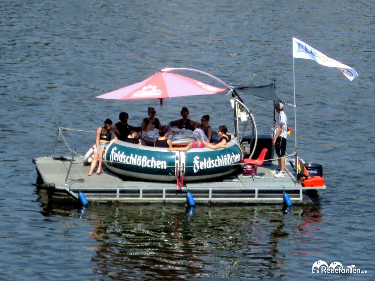 Wer wie wir in Dresden mit dem Zug ankommt, kann den dezenten Hinweis auf die heimische Großbrauerei kaum übersehen. Schon am Bahnhof prangt die übergroße Werbung, aber auch auf der Elbe lassen sich Hinweise auf den Konsum alkoholischer Getränke ausfindig machen. 😉