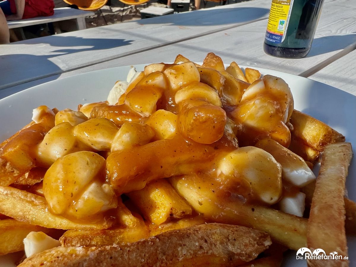 Wir freuten uns sehr, als wir die kanadische Pommes-Variante Poutine auf der Karte sahen. Natürlich wollten wir testen, wie Poutine auf Baltrum schmeckt und erhielten eine ordentliche Portion Pommes mit Bratensoße und Mozzarella. Dazu gab es Chicken Bites, die mit Fertigprodukten gar nichts gemeinsam hatten, denn hier werden die Chicken Bites frisch zubereitet. Als weiteres Gericht gab es eine Captain Future Bowl mit unterschiedlichen Salaten, Reis und Halloumi Sticks.
