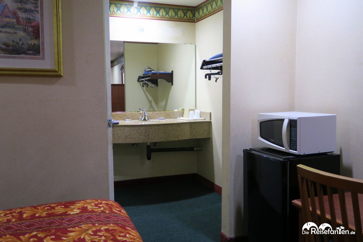 Modern war unser Doppelzimmer zwar nicht eingerichtet, dennoch war alles vorhanden und was fast noch wichtiger war: es war alles sauber. Wie es sich für ein amerikanisches Motel gehört, durfte auch die Mikrowelle auf dem Zimmer nicht fehlen, wenngleich wir diese nicht benötigten. 🙂 Das Zimmer war sehr geräumig und funktional eingerichtet und für eine Übernachtung auf der Durchreise durchaus empfehlenswert. Beachten sollte man jedoch, dass das Marina Seven Motel direkt an einer Hauptstraße liegt, so dass es mitunter recht laut sein kann. Uns hat dies während unseres kurzen Aufenthalts jedoch nicht gestört.