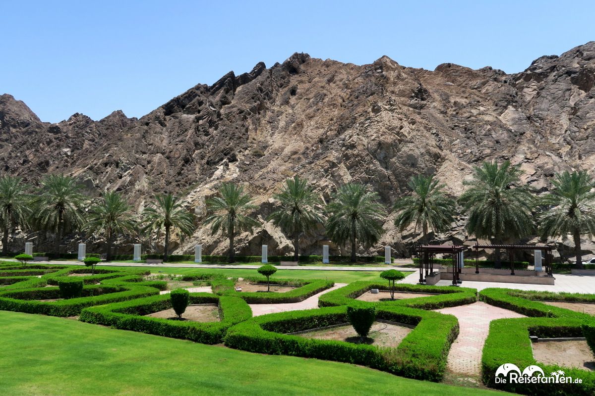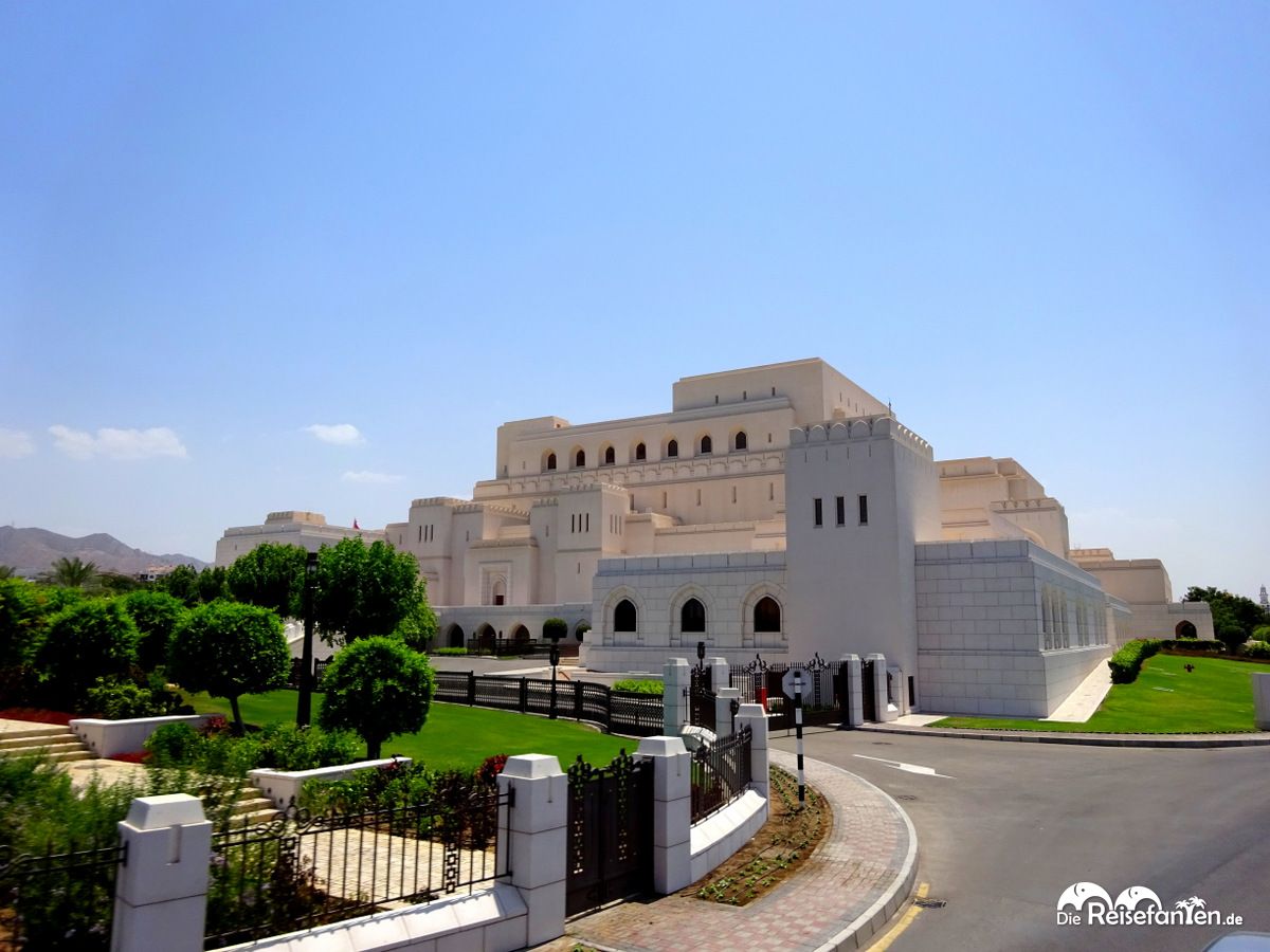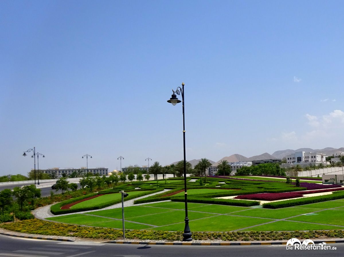 Die Fahrt führte uns u.a. vorbei an einem Fußballstadion, an zahlreichen Autohäusern und am Royal Opera House, das als Gebäude schon sehr imposant ist, die umliegende Gartenanlage jedoch ohne Frage mithalten kann. Wir hörten später, dass man das Opernhaus auch besichtigen kann – wir merken es uns für den nächsten Besuch in Muscat.