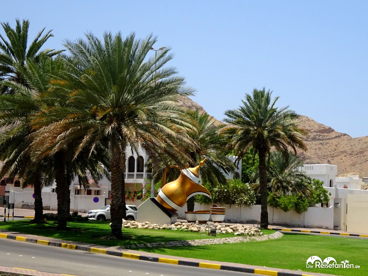 Der Weihrauchbrenner ist das Wahrzeichen von Muscat / Mutrah und aufgrund seiner exponierten Lage schon aus der Ferne sichtbar. Weihrauch findet man in Muscat an jeder Ecke, auch als Mitbringsel im Souq. Mit dem Big Bus ging es an diesem riesigen Bauwerk vorbei, zurück zum Mutrah Souq und dem Ende der Tour. Entlang der schön gestalteten Corniche kann man die Tour schön am Wasser ausklingen lassen. Und wer noch nicht gebummelt hat, den verschlägt es spätestens jetzt zum Souq.