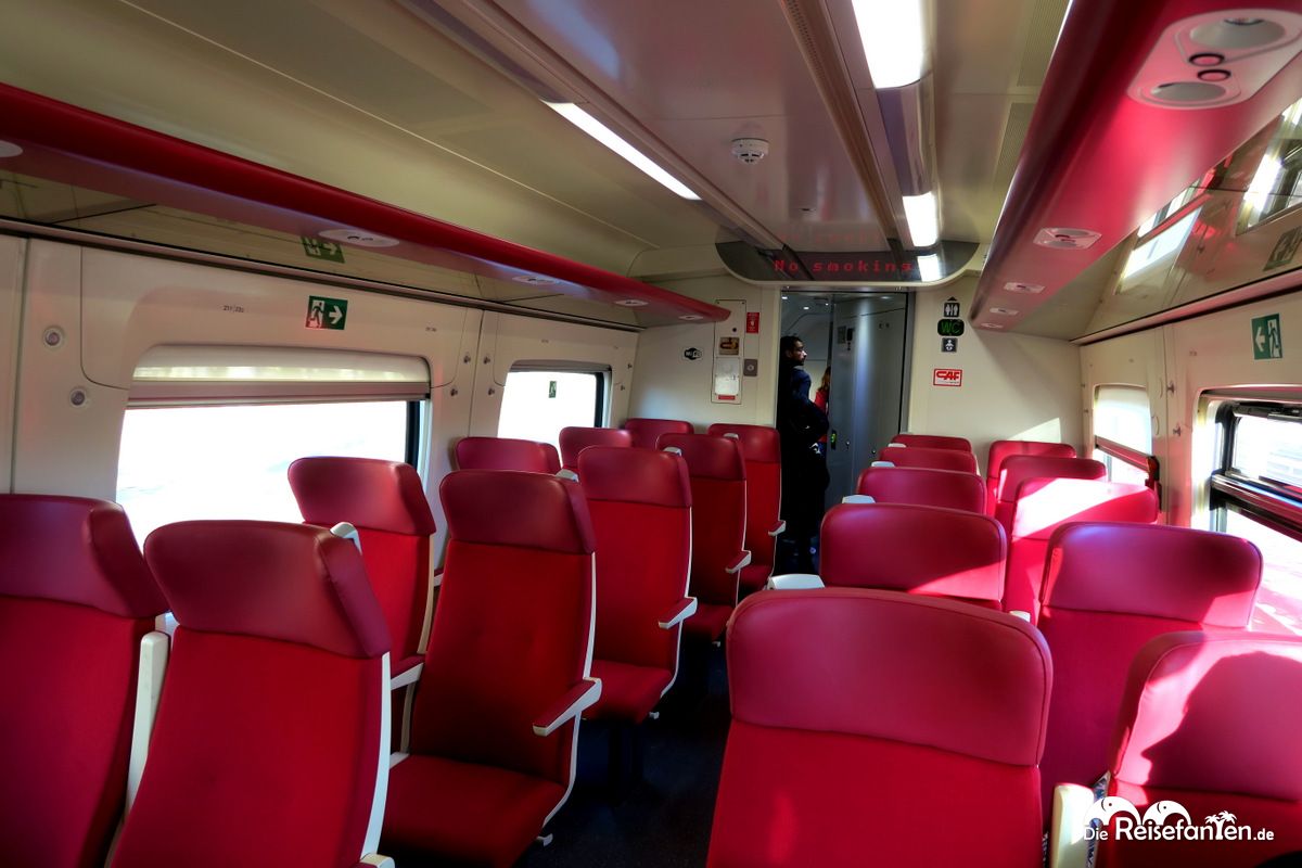 Wir hatten Glück und es fuhr gerade ein Zug nach Cagliari ein, als wir am Bahnsteig ankamen. Fahrkarten müssen unbedingt im Vorfeld gekauft werden aber das kennen wir ja auch so von zu Hause. Der Zug war sehr leer und wir waren überrascht darüber, wie modern dieser war. Zudem machte der vollklimatisierte Zug einen sehr gepflegten Eindruck. Seht selbst: