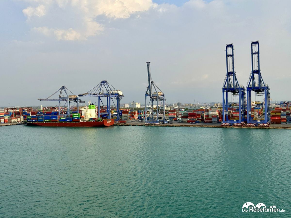 Wir haben vorab schon zwei Nächte im Zentrum von Bangkok verbracht und fuhren am Einschiffungstag mit einem privaten Taxi nach Laem Chabang. 2017 haben wir Julie Taxi Service für eine Tour in den Norden Bangkoks gebucht und da uns der Tag und der nette Kontakt so gut gefallen haben, buchten wir Julie für den Transfer nach Laem Chabang. Es war eine entspannte fahrt, die 1 Stunde und 45 Minuten dauerte. Zeit genug, um sich über die Ereignisse der letzten Jahre auszutauschen. Rund 2000 THB zahlten wir für die Strecke.