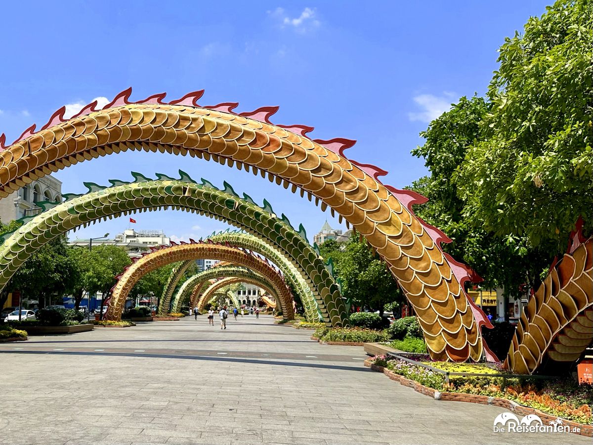 Drei Wochen vor unserer Ankunft fand des vietnamesische Neujahrsfest statt und so war die Stadt noch sehr schön dekoriert mit Drachen und unzähligen Blumen. Vor allem in der Fußgängerzone Quảng Trường Nguyễn Huệ. Das sah toll aus und die Drachen bewegten sich sogar.