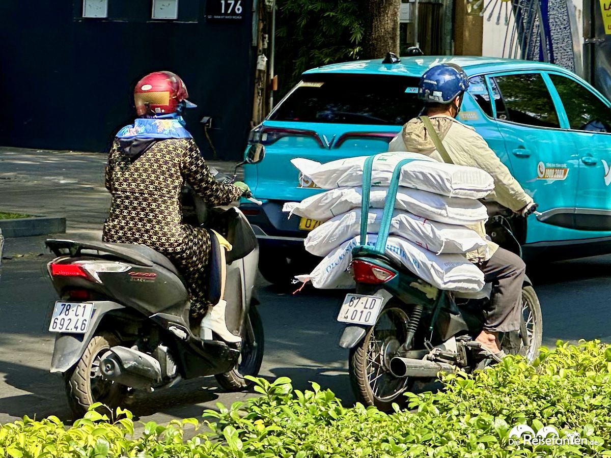 Ho Chi Minh präsentierte sich moderner als wir gedacht hätten. In den Vororten wurde viel und zudem recht modern gebaut. Die Autobahn war zudem in einem sehr guten Zustand, allerdings darf man max. 100 km/h fahren, dadurch ist die Fahrt auch so lang. In Ho Chi Minh gibt es unzählige Mopeds, mit Beifahrern und als Transporter zweckentfremdet und man muss sich erstmal überwinden die Straße zu überqueren. Alles etwas verrückt dort im Straßenverkehr. 🙂 Die Architektur ist aufgrund der Geschichte recht europäisch und so wird hier auch auf der rechten Straßenseite gefahren. Traditionelle Straßenverkäufer sieht man hier an jeder Ecke und anders als bei uns wird hier noch viel repariert.