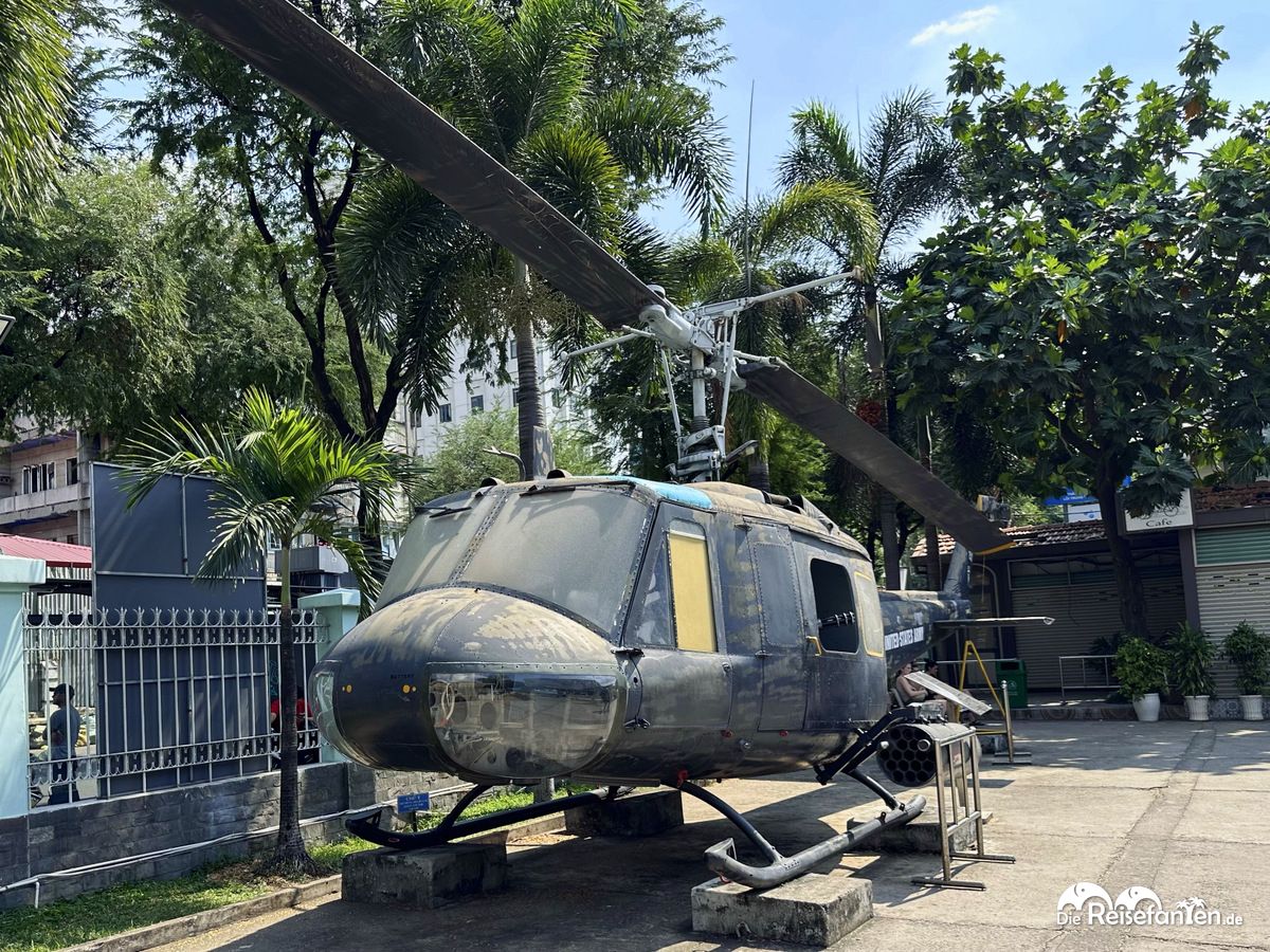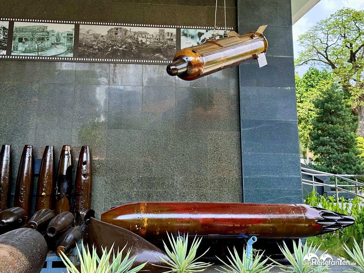 Schließlich kamen wir am Unabhängigkeitspalast vorbei und erreichten dann unser nächstes Ziel, das Kriegsmuseum. Hier wird der Vietnamkrieg behandelt inkl. der noch heute sichtbaren Folgen. Das Museum ist sehr umfangreich und hat einen großen Außenbereich und mehrere Etagen im Inneren. Um sich alles in Ruhe anzusehen, benötigt man einen Tag. Wir hatten zwar nicht viel Zeit, wollten aber zumindest einen Blick reinwerfen. Der Eintritt kostete nur 40.000 VND, also rund 1,50 EUR. Das Museum war gut gestaltet, im Inneren war es aber sehr warm, da es nur Ventilatoren gab. Sehr beklemmend war vor allem der Bereich zum Thema Agent Orange. Wir hätten in dem Museum noch viel mehr Zeit verbringen können, wollten dieses Museum aber auch nicht auslassen. Nachdem wir uns im Außenbereich noch umgesehen hatten, ging es noch kurz über den Markt.